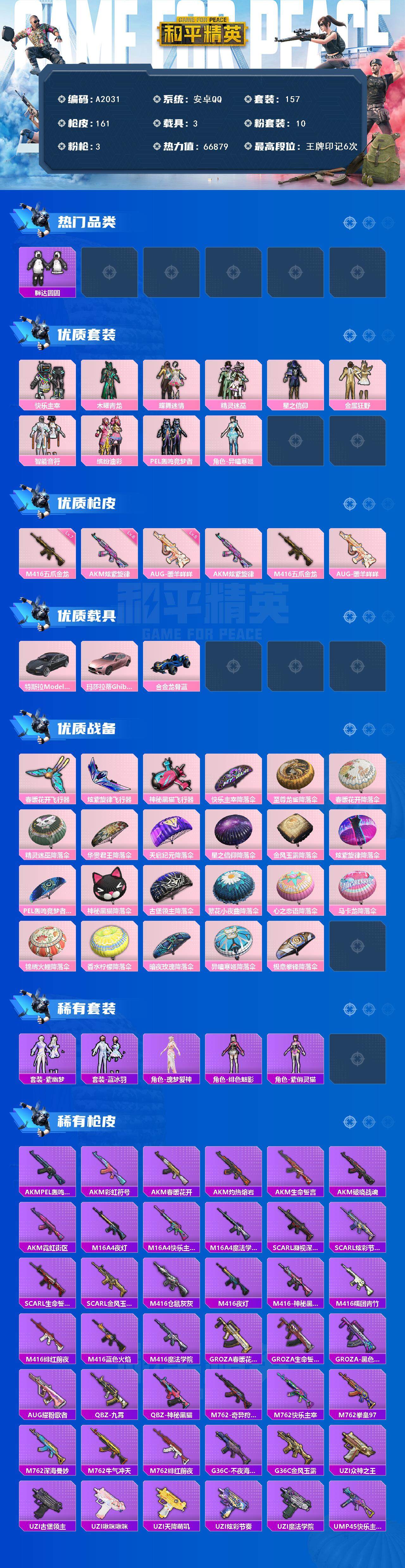 hs51305 安卓手Q-14王牌印记-5粉装-6特效枪-62035热力值-187套装-187枪皮-