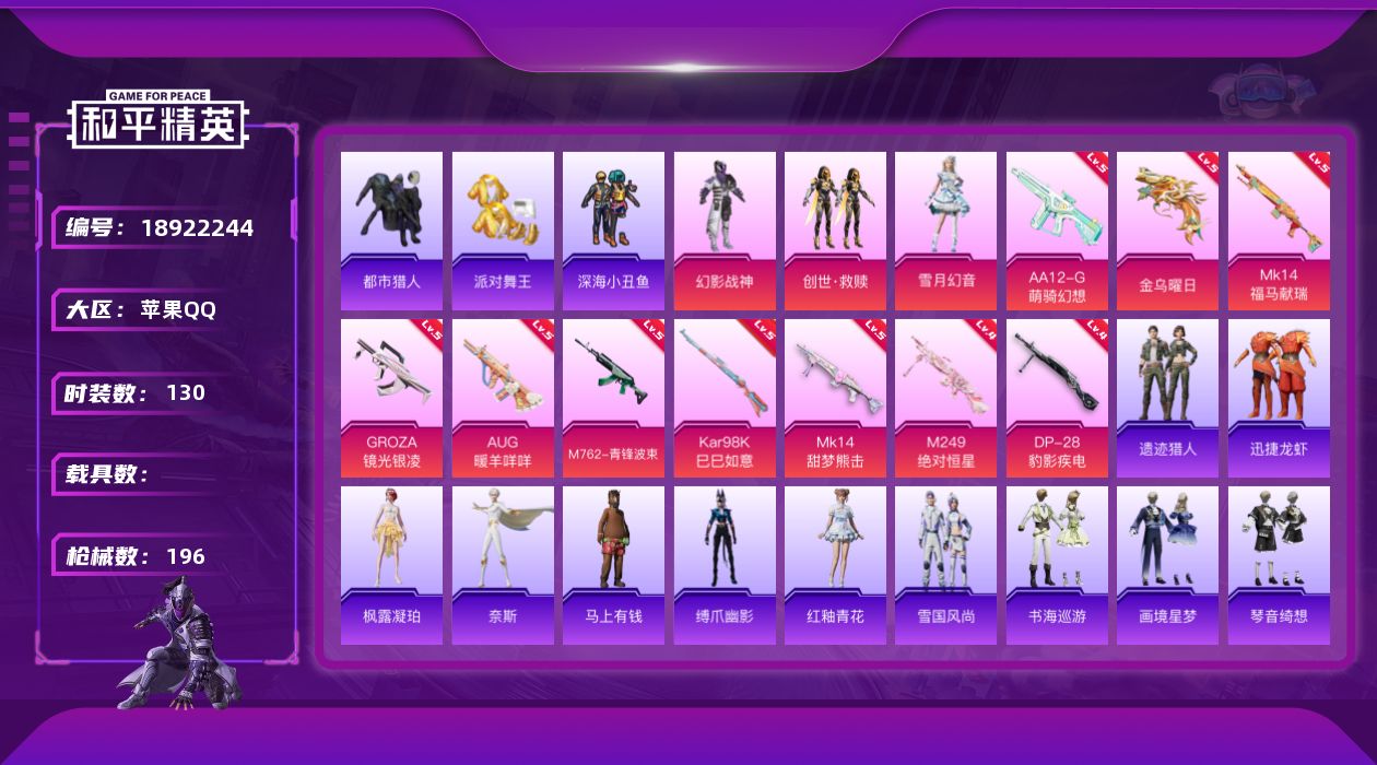 苹果 手Q-3粉装-10特效枪-0载具-3粉色飞行器-52644热力值-9王牌印