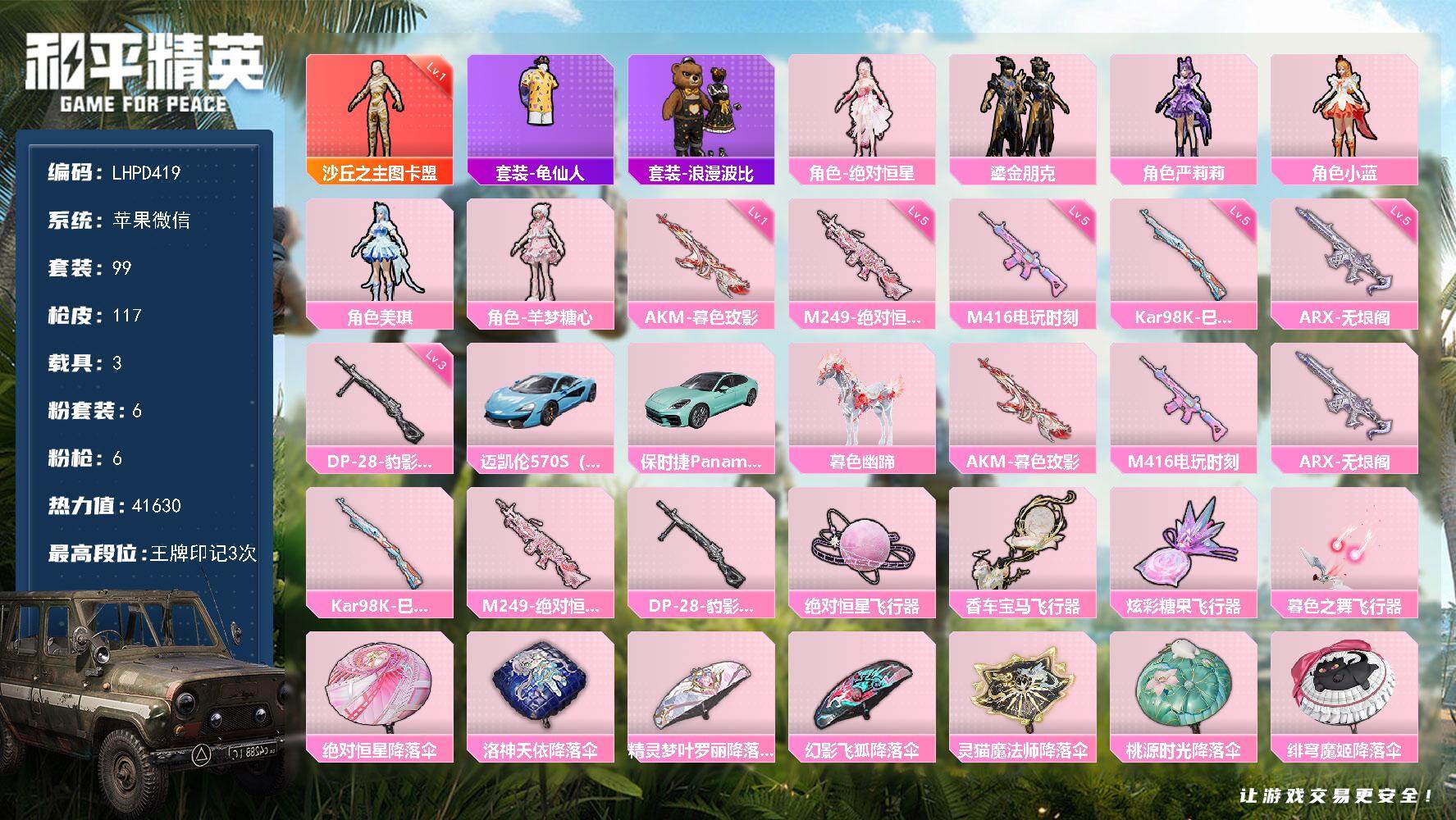 【店主推荐捡漏号!可直接换绑】苹果 微信-1神装-6粉装-6特效枪-3载具-4