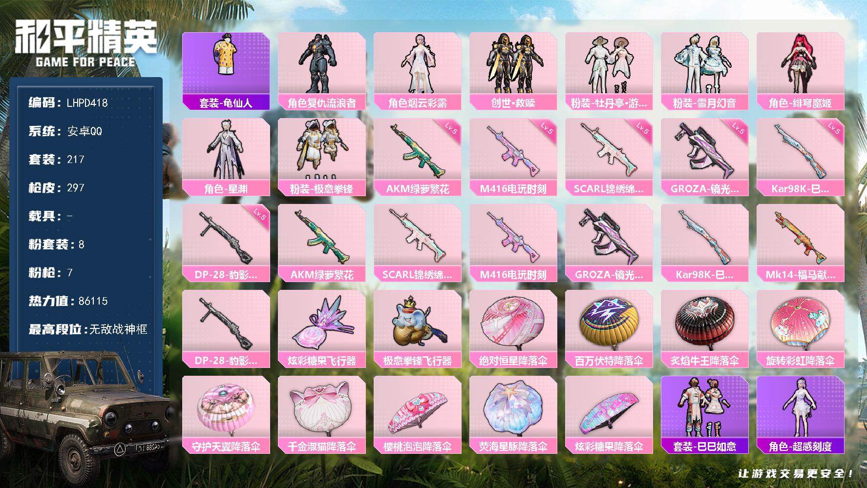 【店主推荐捡漏号!可直接换绑】安卓 手Q-无敌战神框-8粉装-7特效枪-0载具