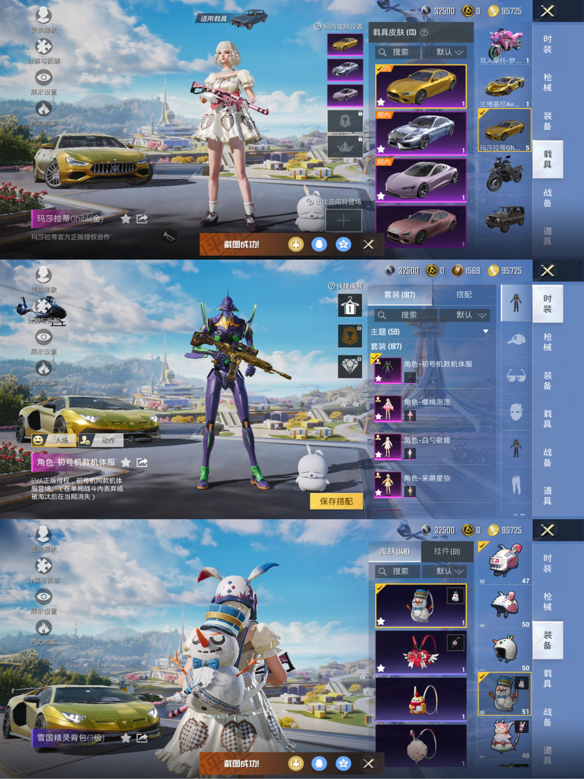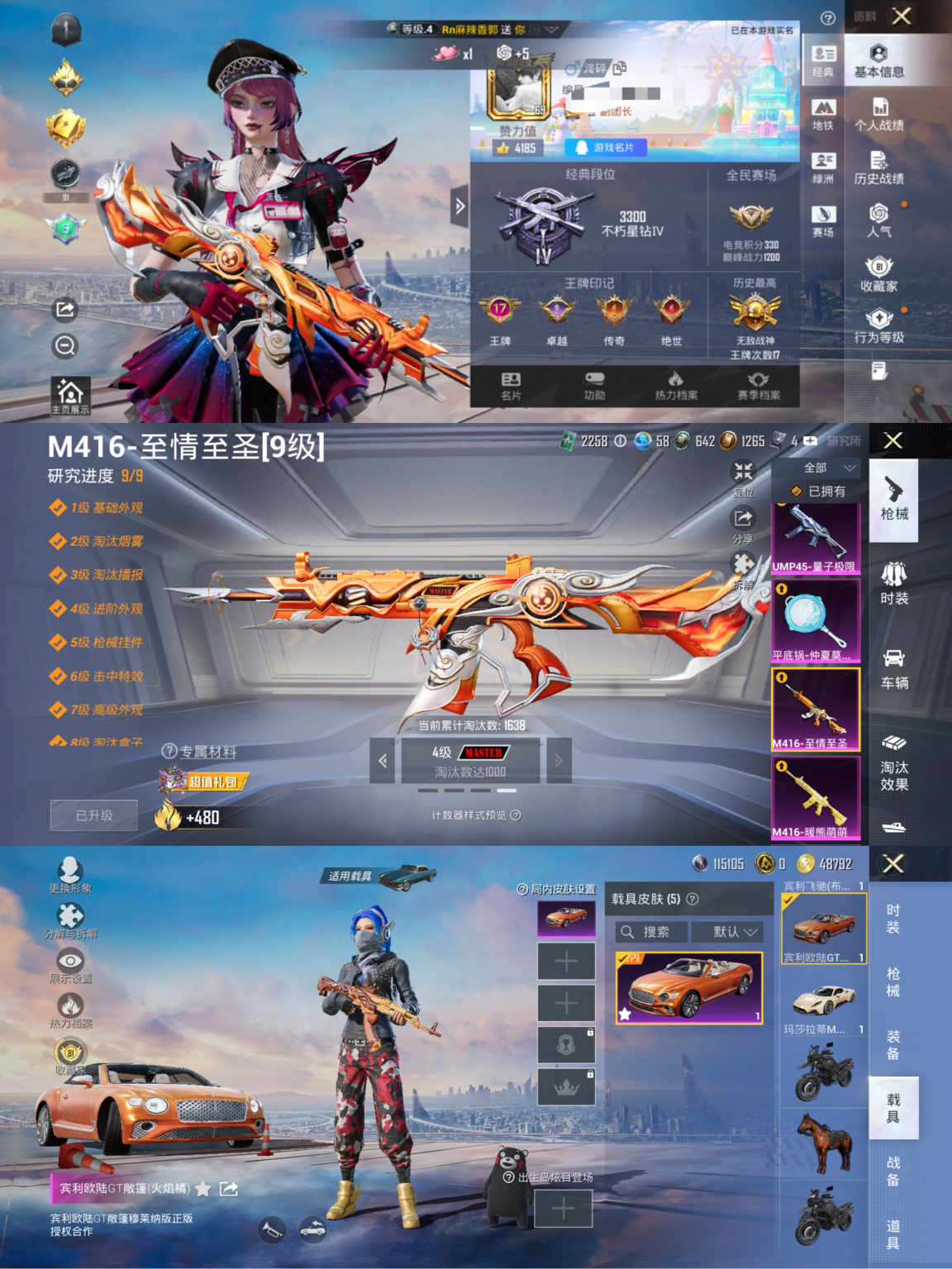 ss6和ss8赛季无敌战神,梦幻火箭,异瞳寒姬,m416心之恋语,保时捷panamera星辰紫等