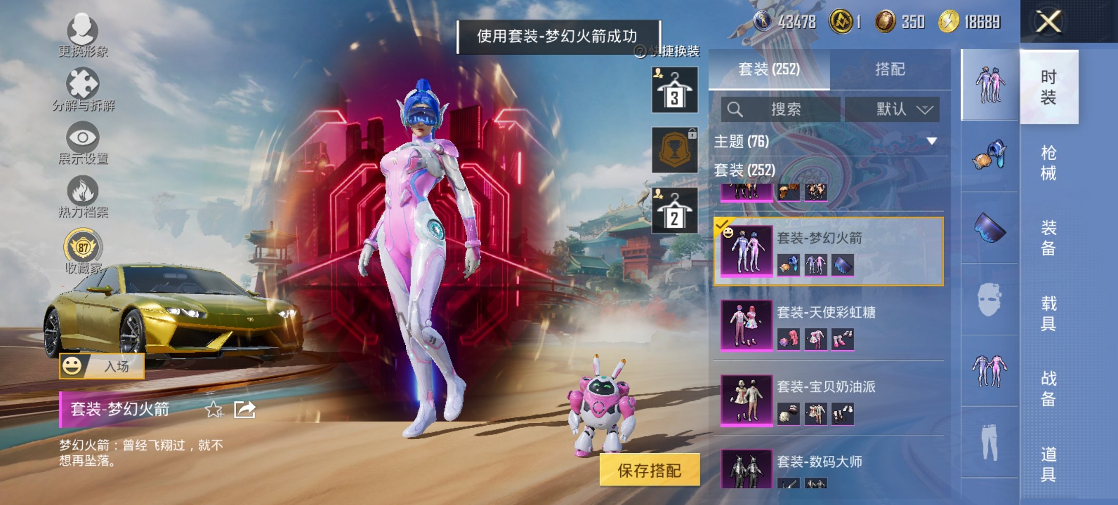 梦幻火箭等18套粉装,1车子,7级五爪等7把特效枪,