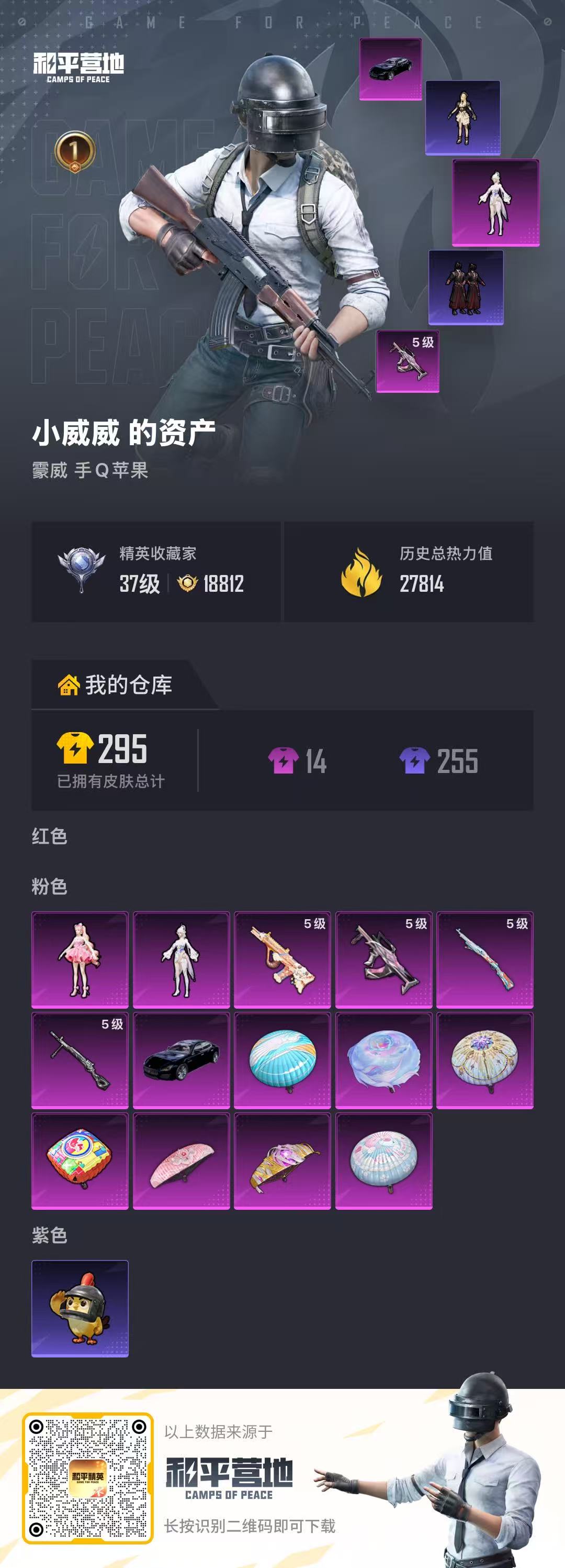 hs61768 苹果手Q-20王牌印记-3粉装-8特效枪-1载具-83353热力值-197套装-27