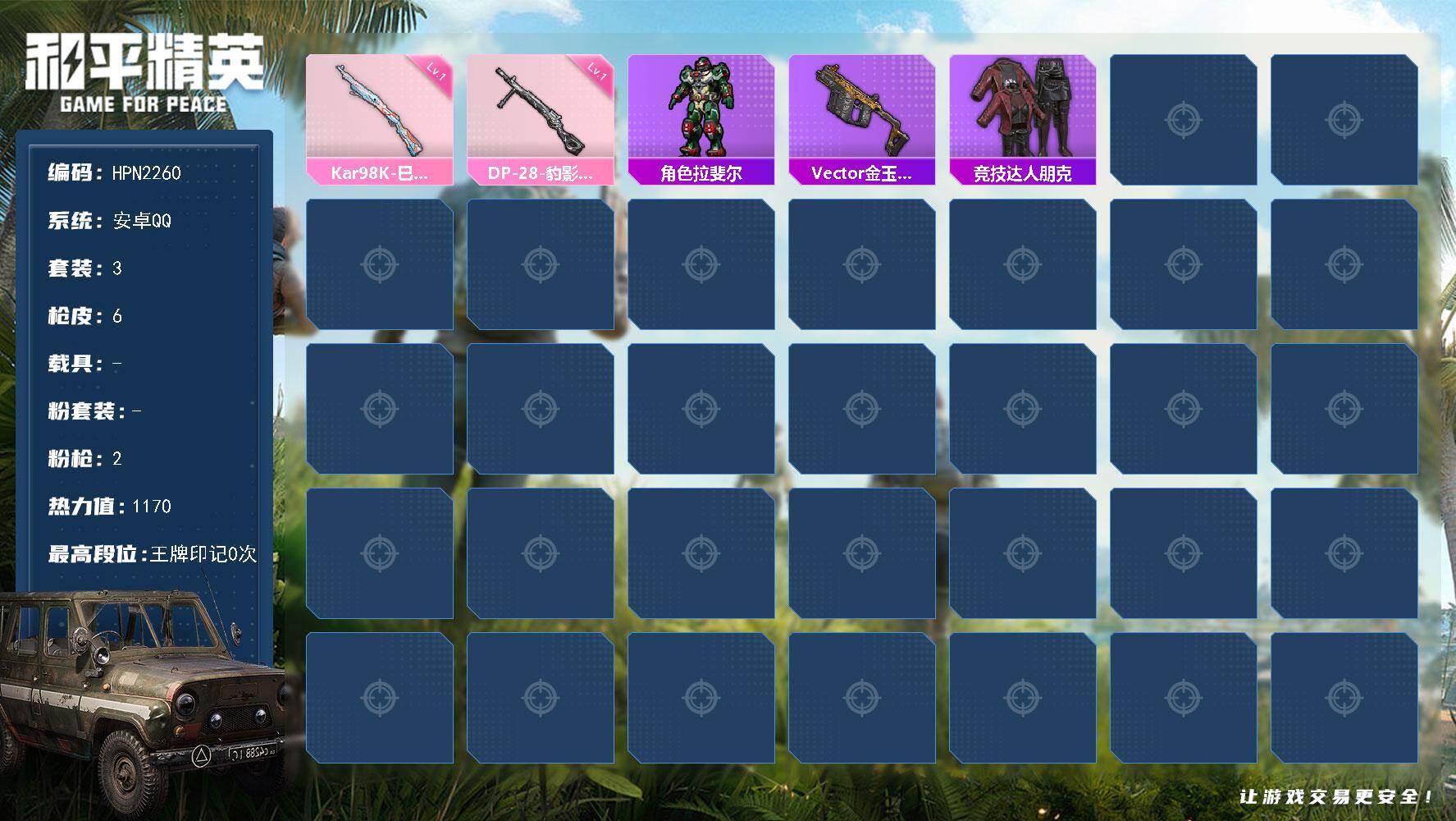 3套装/枪械2/装备7/战备9/热力值1170/一级Kar98