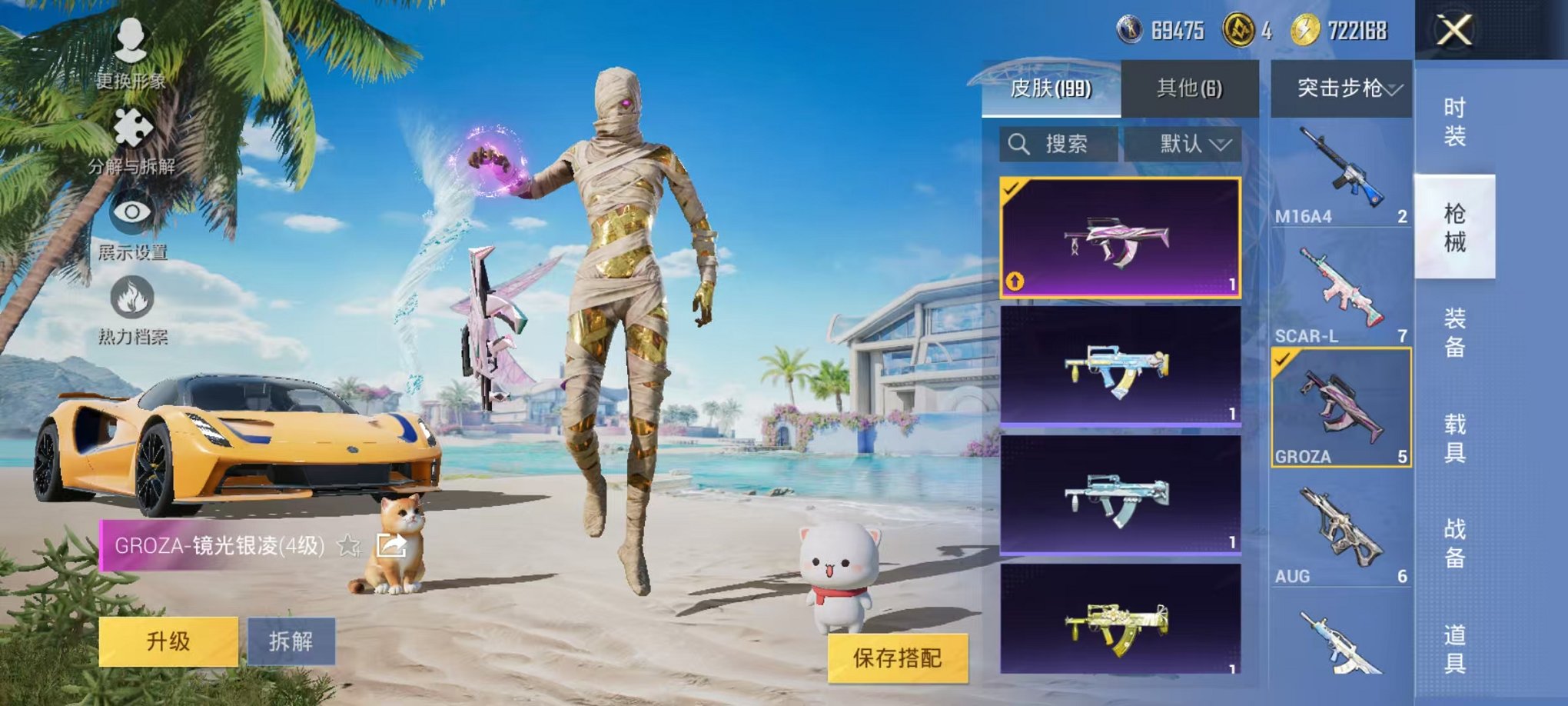 538-【极品3红装4级红木乃伊盛世惊鸿欧若拉14粉装13特效枪5载具可秒换绑】