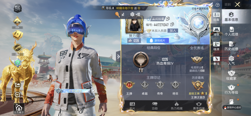 92套装/枪械6/装备204/载具2/战备95/王牌印记7/热力值42623/五
