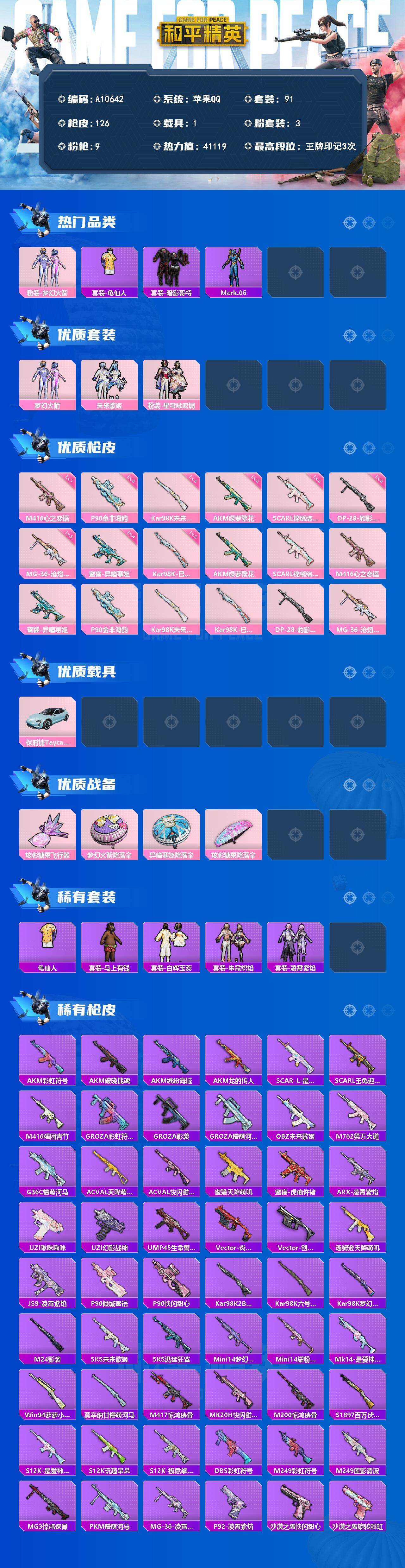 260套装/枪械20/装备519/载具7/战备285/王牌印记1