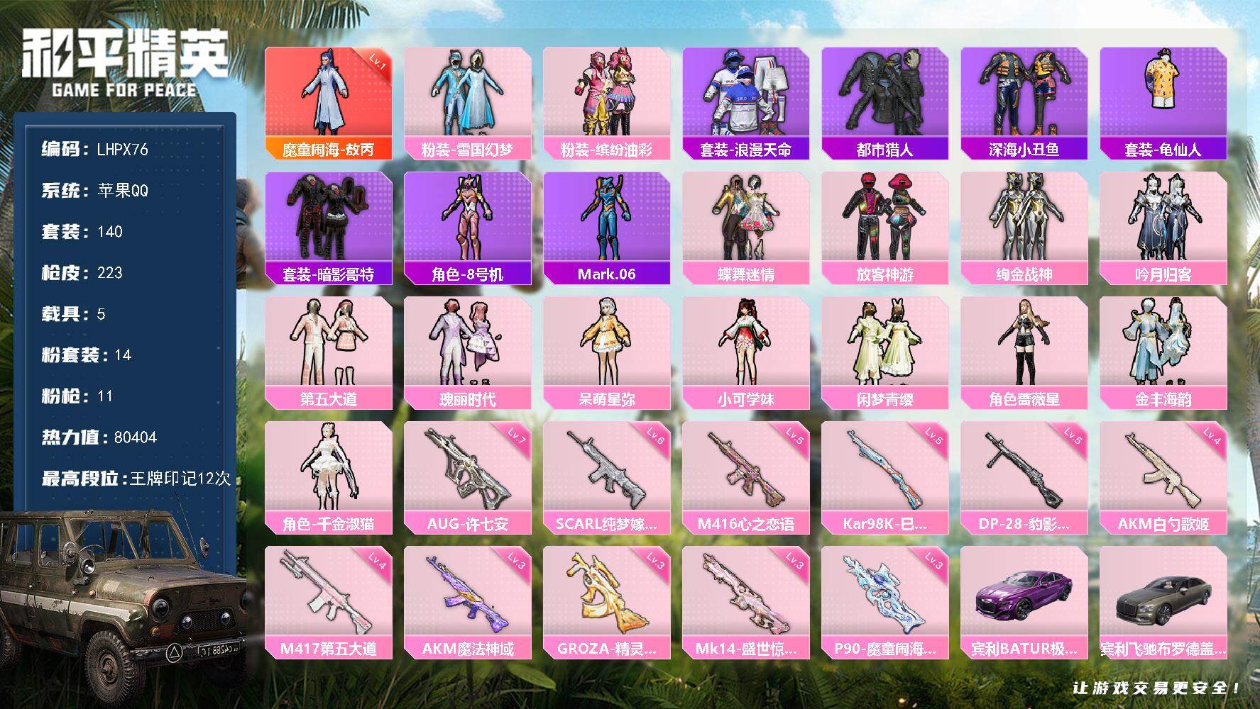 hs56040 苹果手Q-9王牌印记-5粉装-13特效枪-3载具-57239热力值-125套装-17