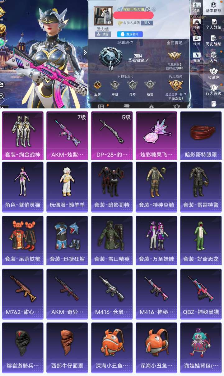 THP146-1粉2特效枪-满级AKN红眼罩多稀有皮肤身法素材号-历史王牌7星 3王牌印记-有二次