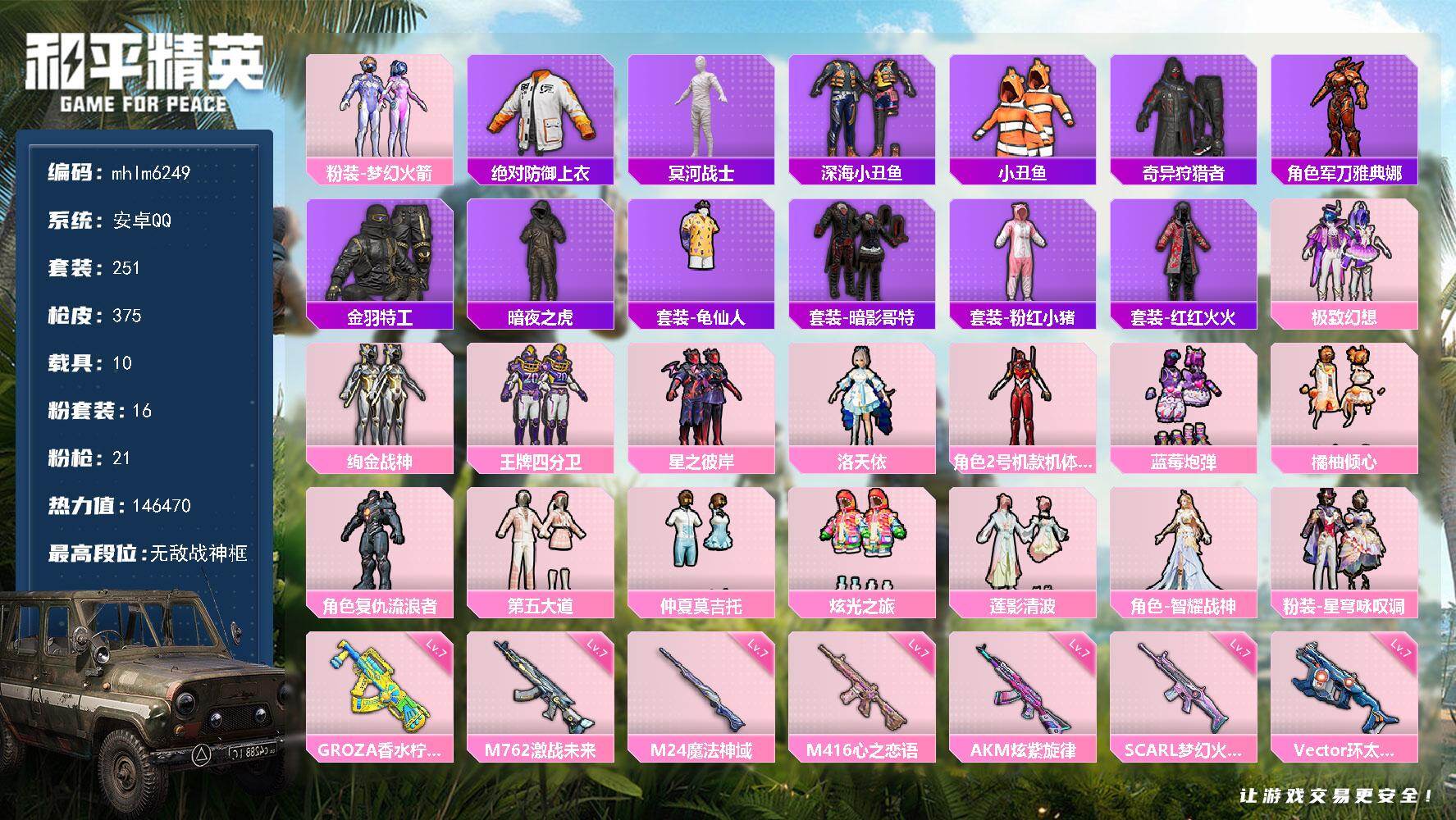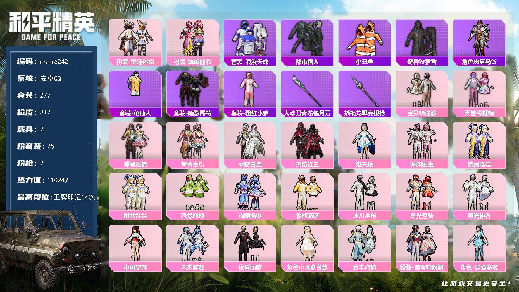 安卓 手Q-25粉装-7特效枪-2载具-6粉色飞行器-110249热力值-14王