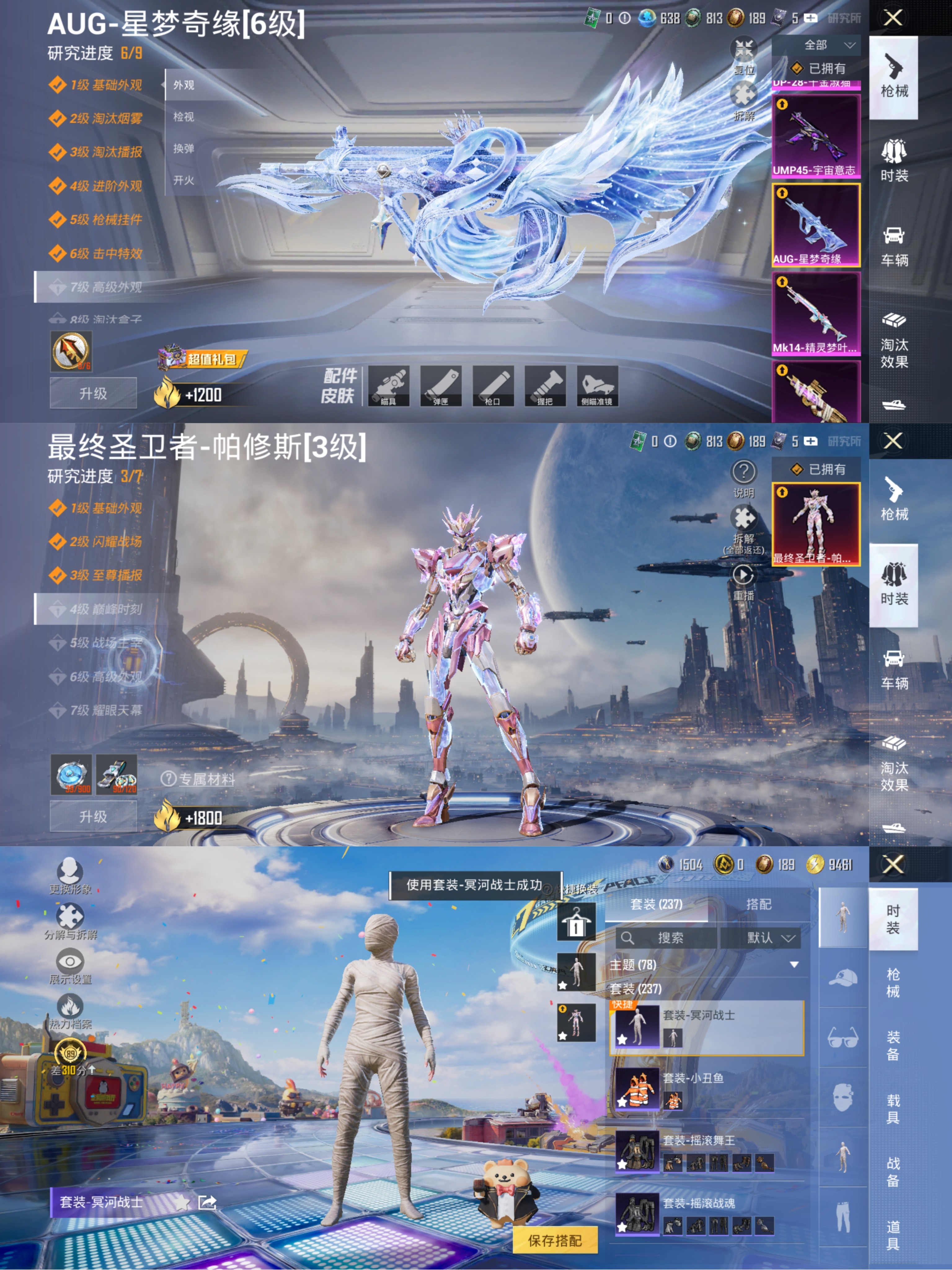 【3级红装AUG星梦奇缘木乃伊都市男神金鞋26粉装28特效枪2载具小熊背包胖达圆