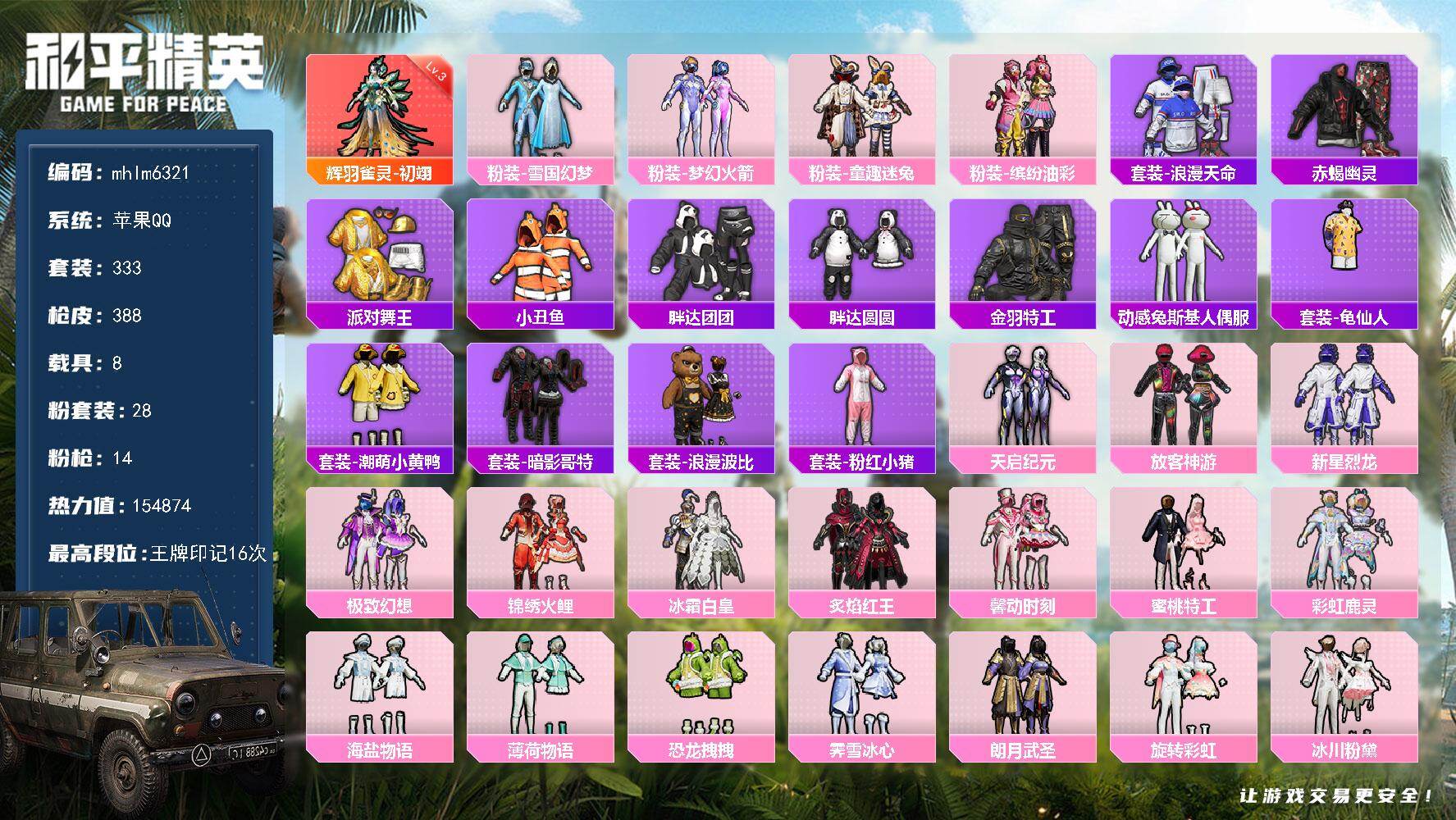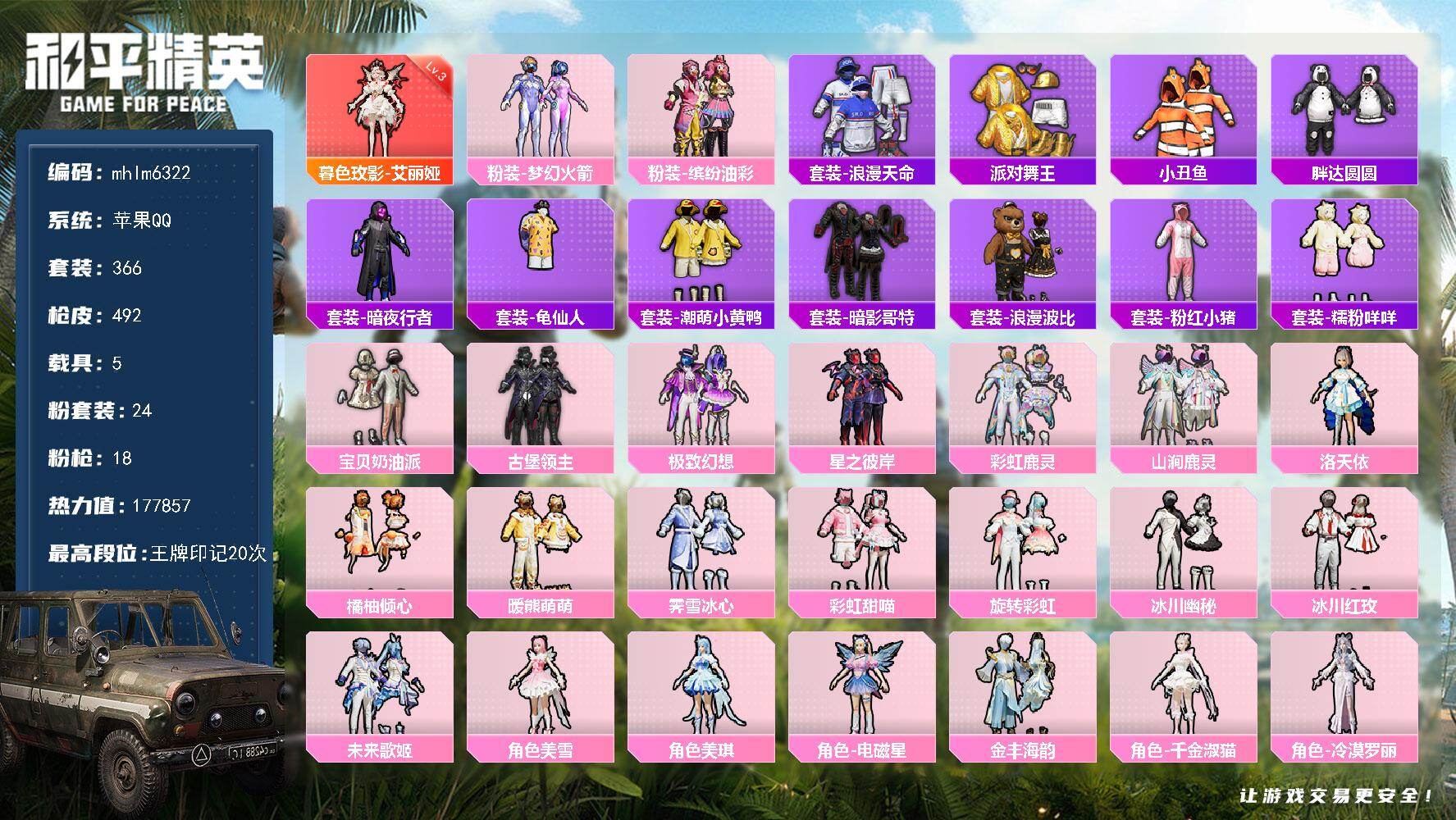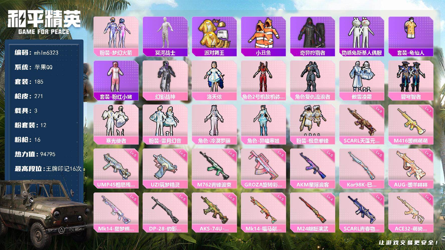 【mhlm6321】苹果 手Q-1神装-28粉装-14特效枪-8载具-5粉色飞