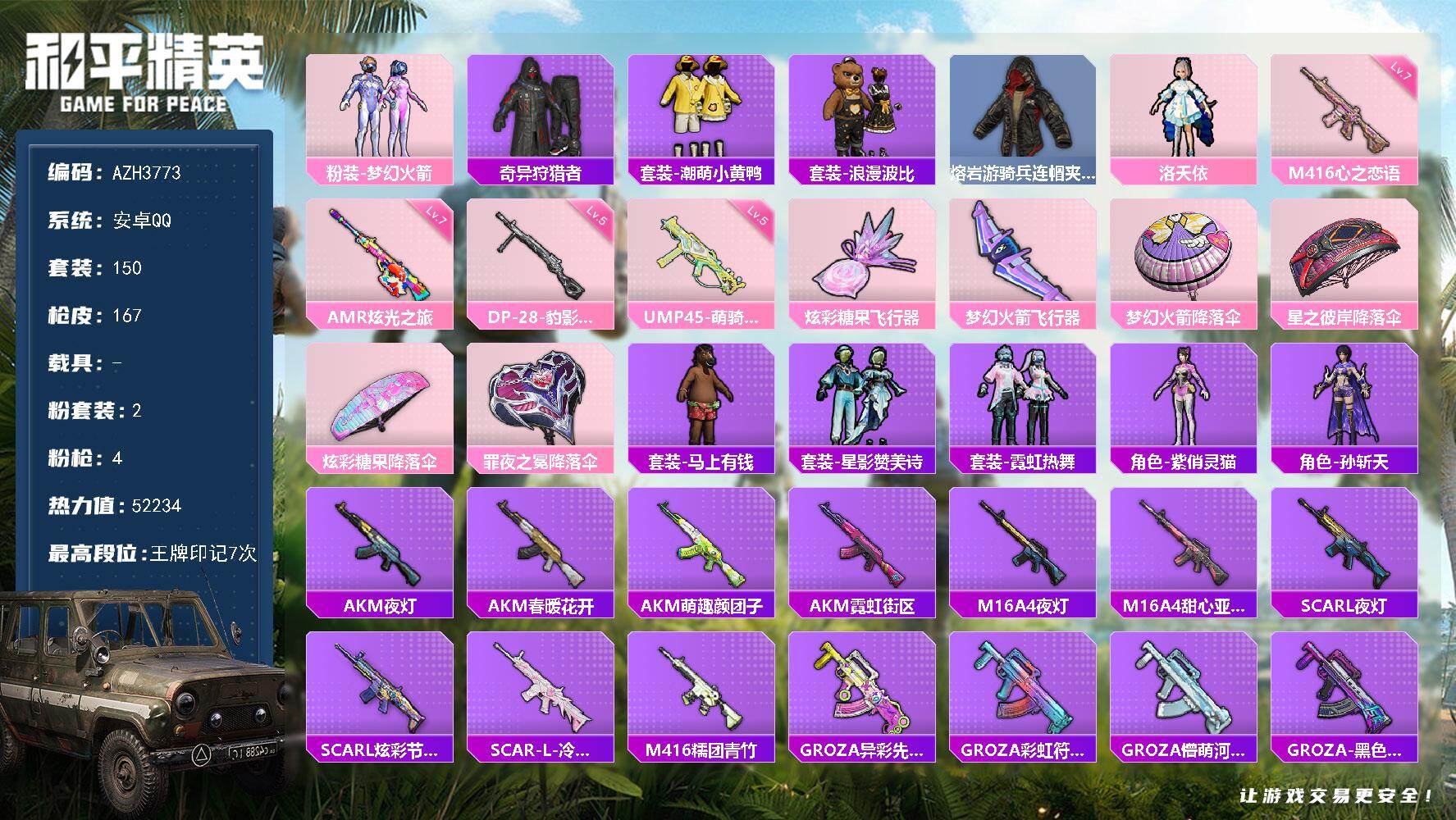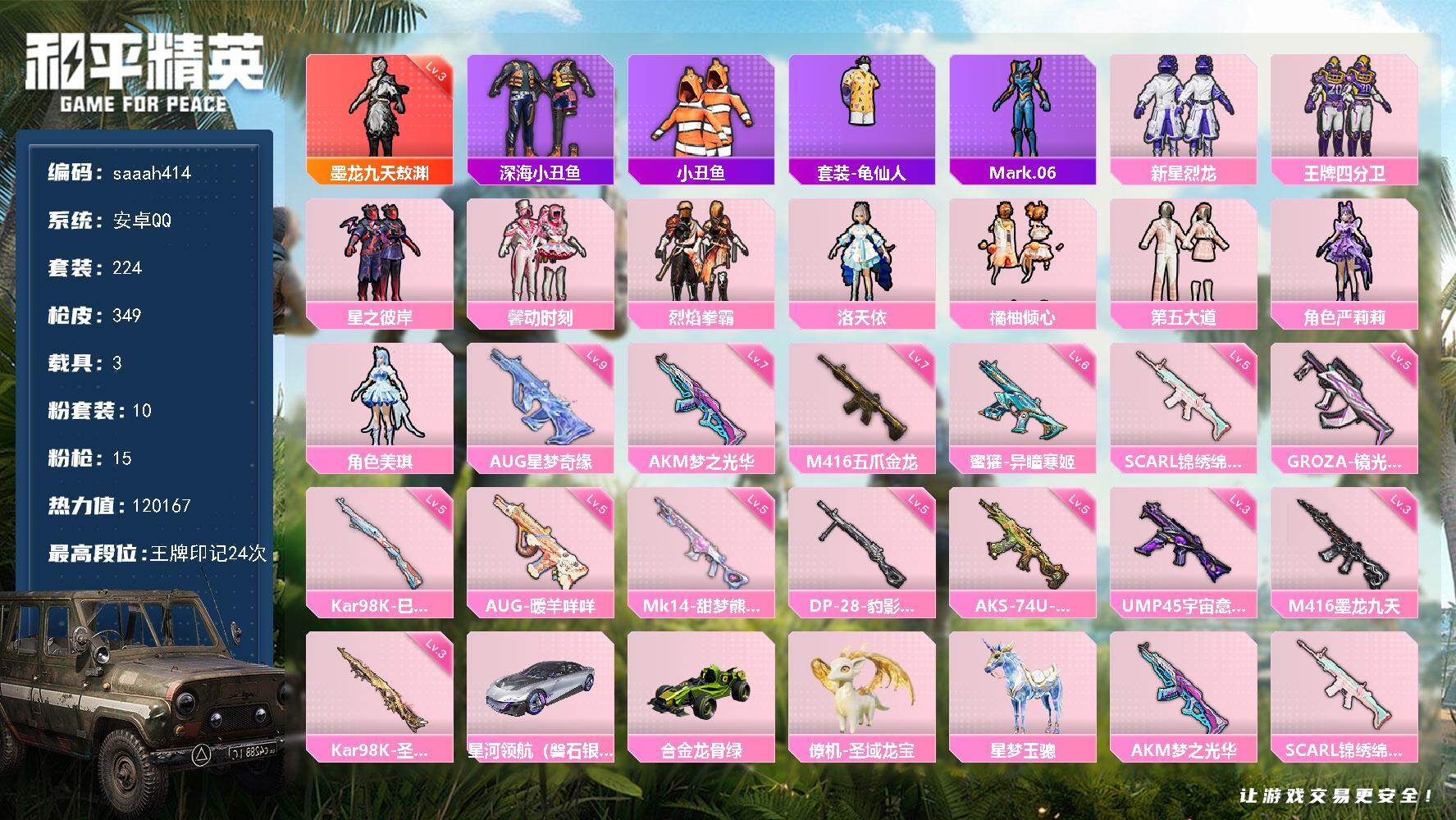安卓 手Q-1神装-10粉装-15特效枪-3载具-10粉色飞行器-120167热