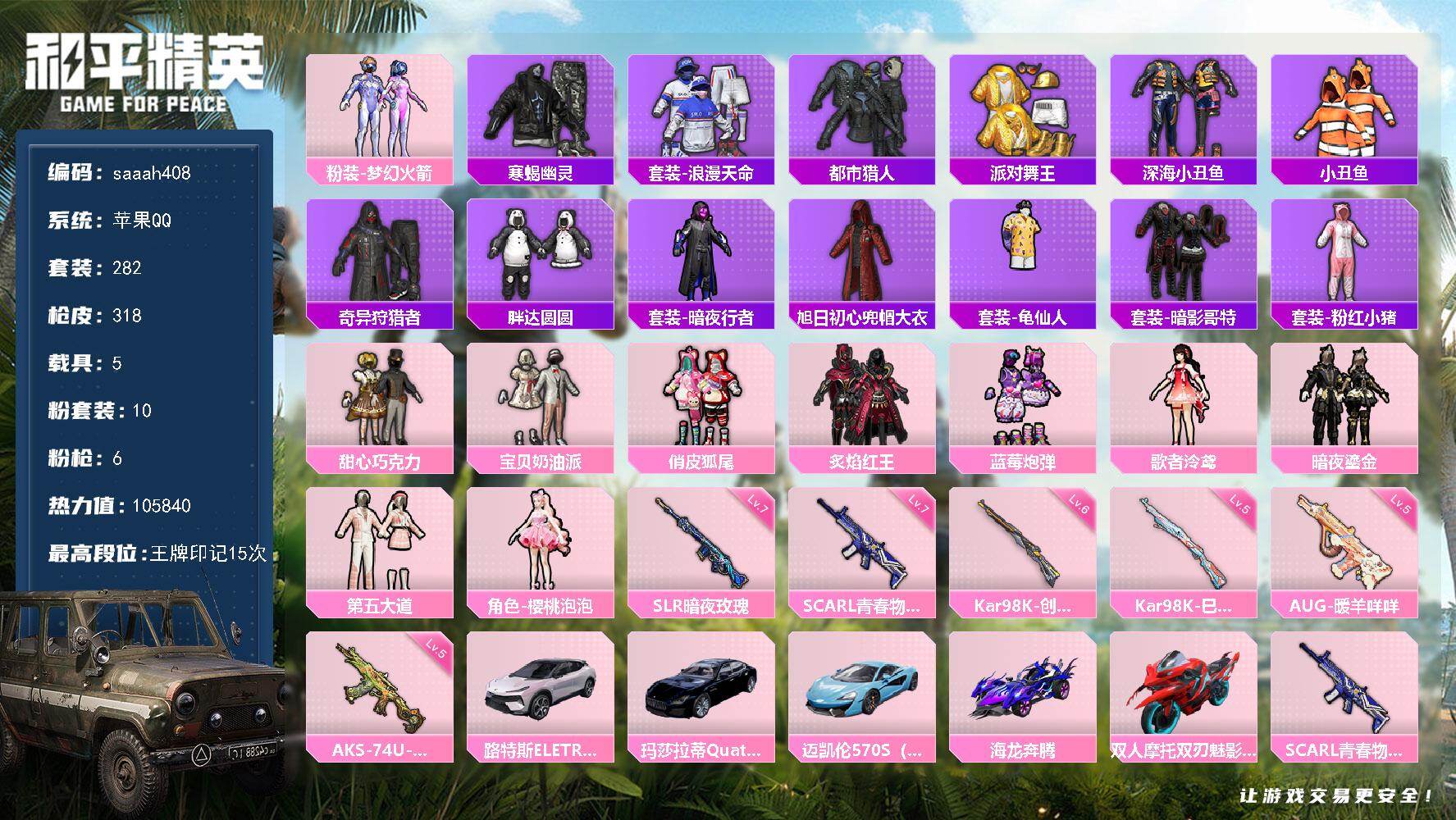 苹果 手Q-10粉装-6特效枪-5载具-4粉色飞行器-105840热力值-15王