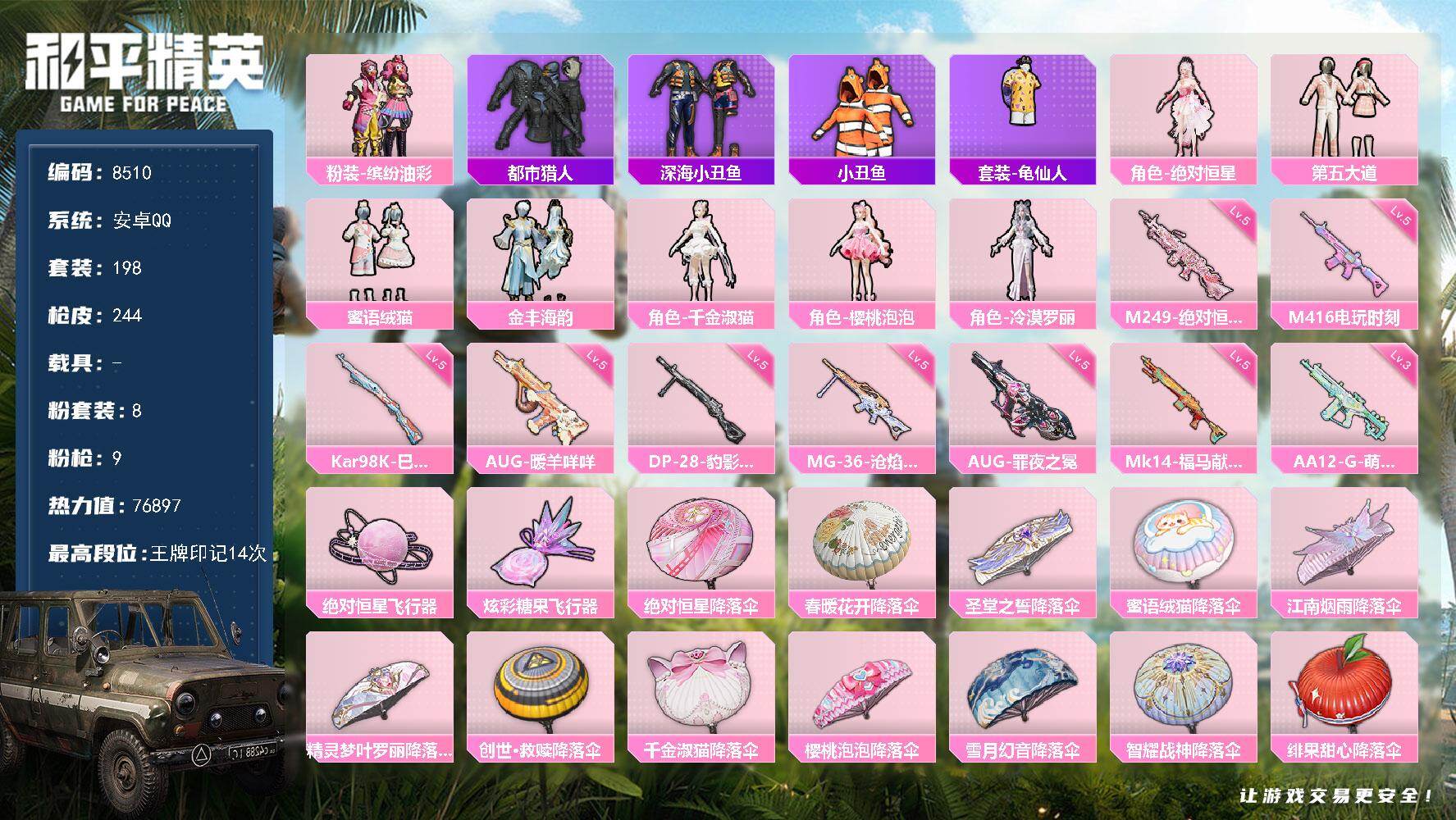 安卓手Q-7王牌印记-13粉装-12特效枪-2载具-728