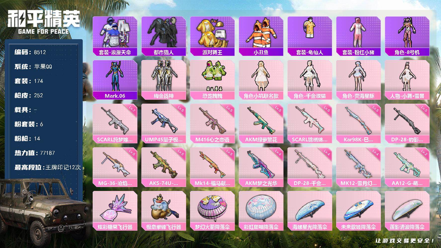 【8512】6粉装-14特效枪-0载具-2粉色飞行器-77187热力值-12王