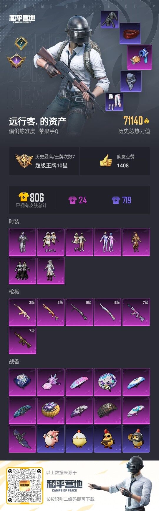 7粉装-6特效枪-0载具-2粉色飞行器-71140热力值-7王牌印记-176套装-226枪皮