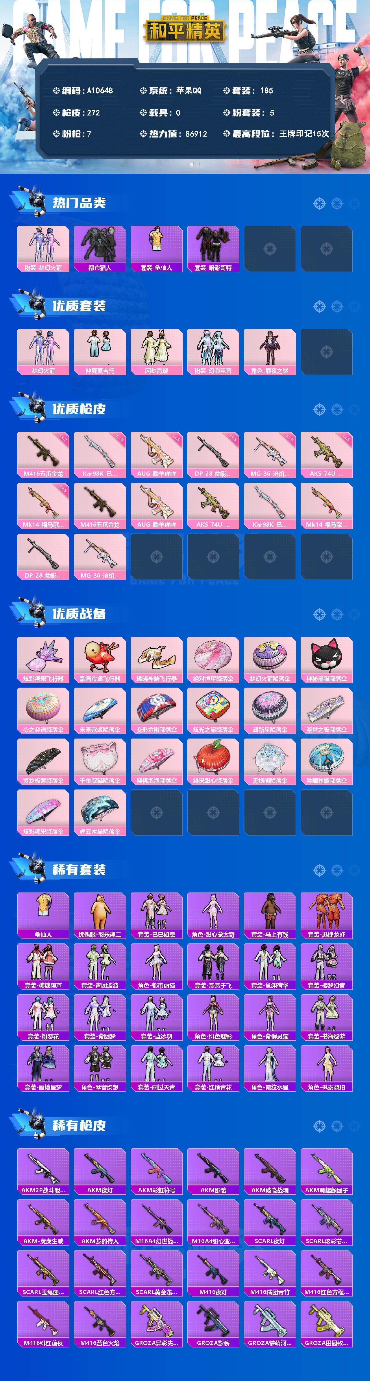 11粉装-2特效枪-2载具-1粉色飞行器-46468热力值-8王牌印记-110套装-141枪皮