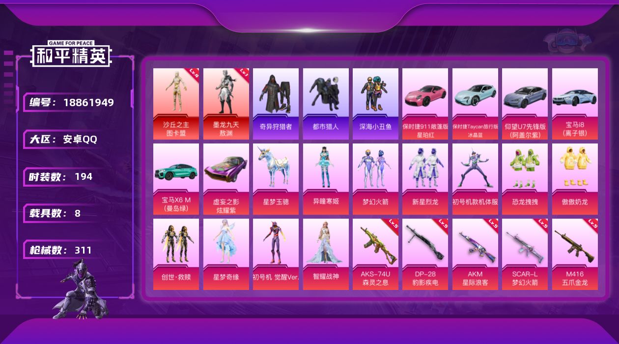5粉装-7特效枪-0载具-3粉色飞行器-86912热力值-15王牌印记-185套装-272枪皮