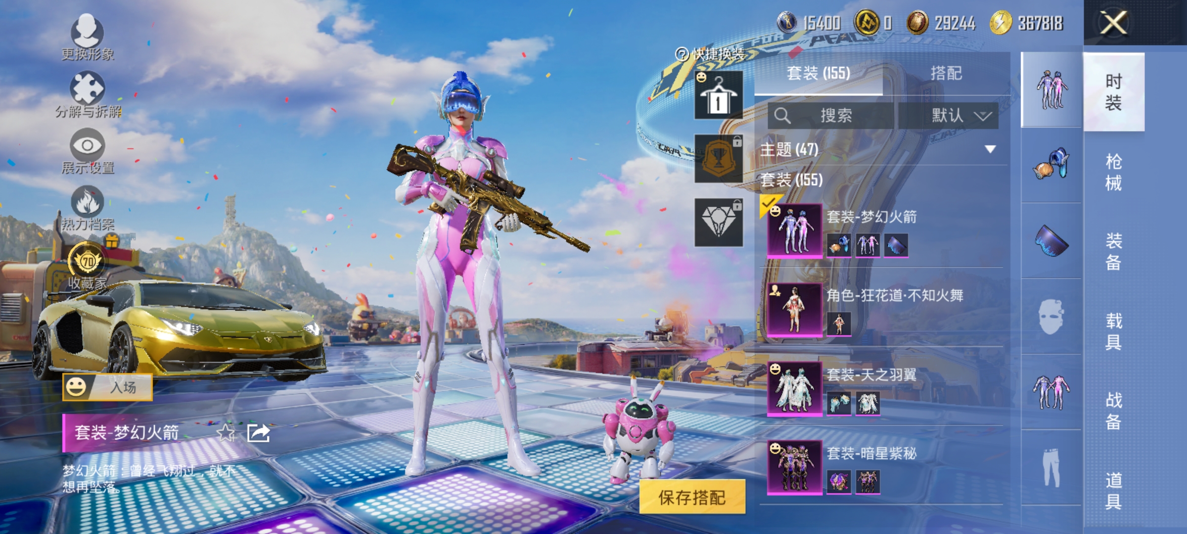 3粉装-6特效枪-1载具-1粉色飞行器-54467热力值-14王牌印记-156套装-175枪皮