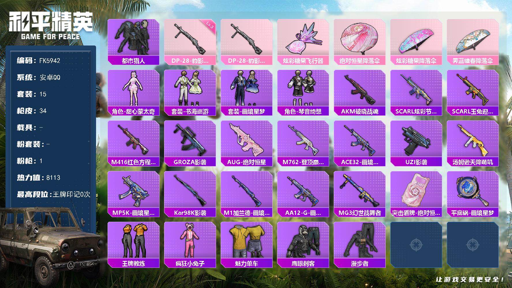 【FK5942】15套装/枪械1/装备49/战备24/热力值8113/三级DP