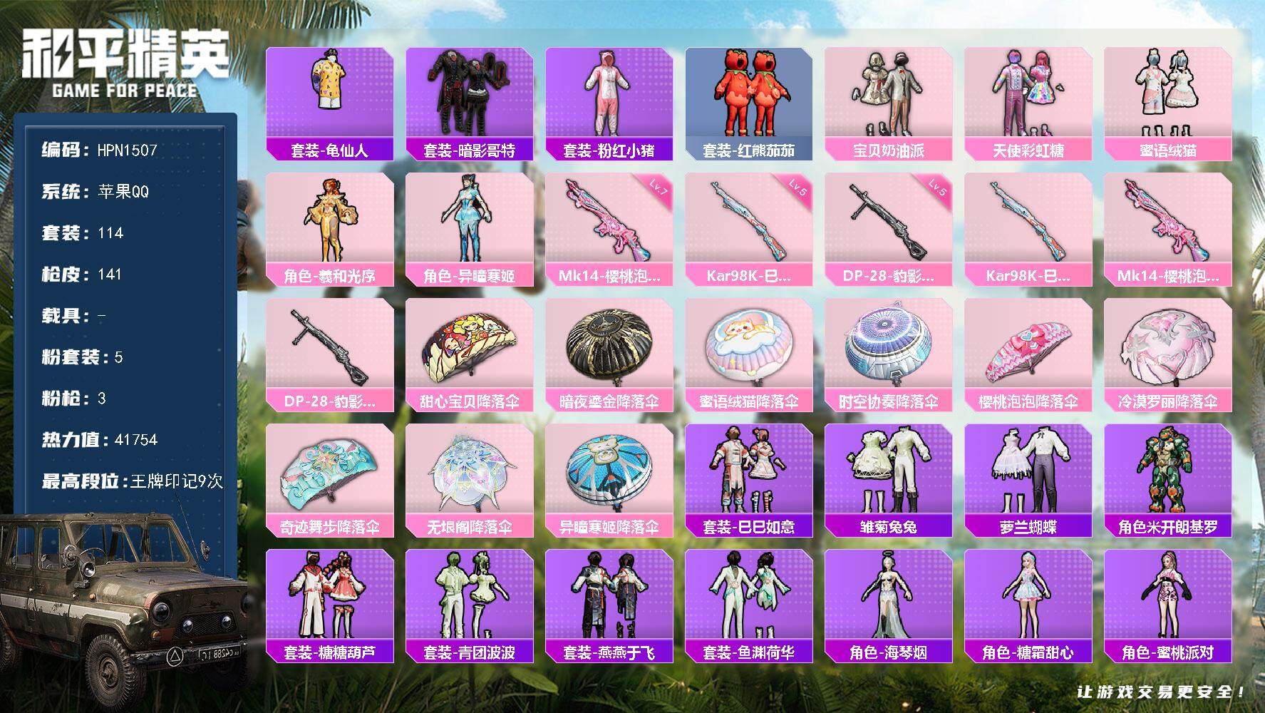 1红4粉装5特效枪1载具图卡盟2级战神框 -52682热力值