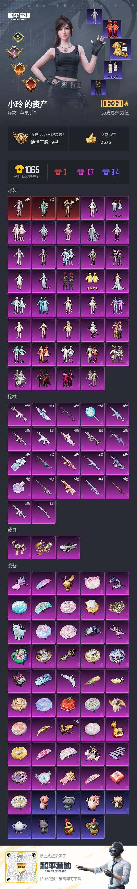 3神装-36粉装-22特效枪-3载具-13粉色飞行器-106360热力值-5王牌印记