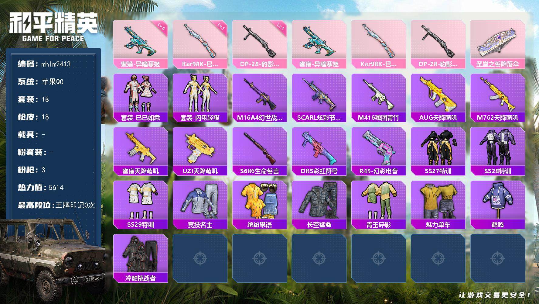 和平精英【苹果QQ】【mhlm2413】苹果 手Q-0粉装-3特效枪-0载具-0粉色飞行器-561