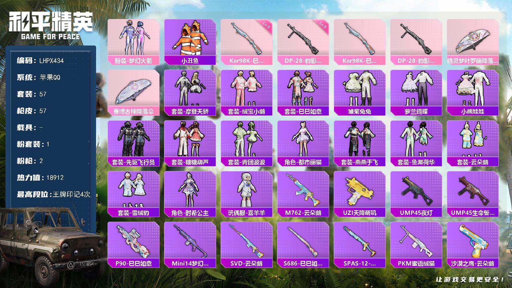 【店主推荐捡漏号!可直接换绑】苹果 手Q-1粉装-2特效枪--1.8w热力值-