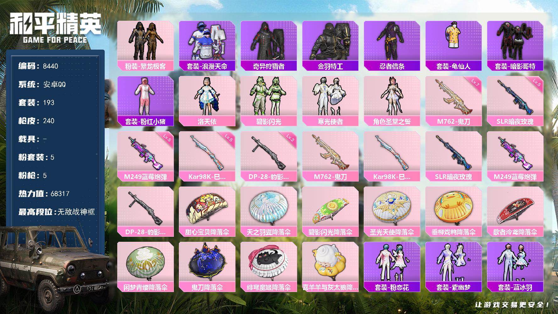 【8440】无敌战神框-5粉装-5特效枪-0载具-0粉色飞行器-68317热力