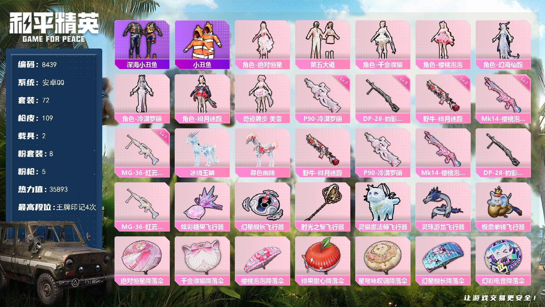 【8439】8粉装-5特效枪-2载具-6粉色飞行器-35893热力值-4王牌印