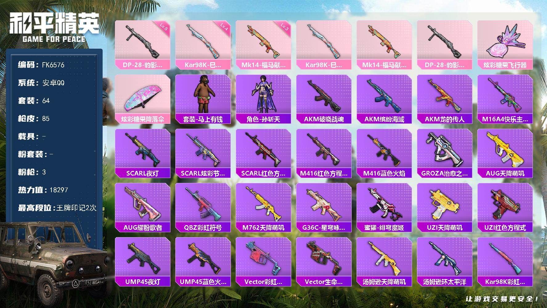 【FK6576】64套装/枪械3/装备71/战备49/王牌印记2/热力值182