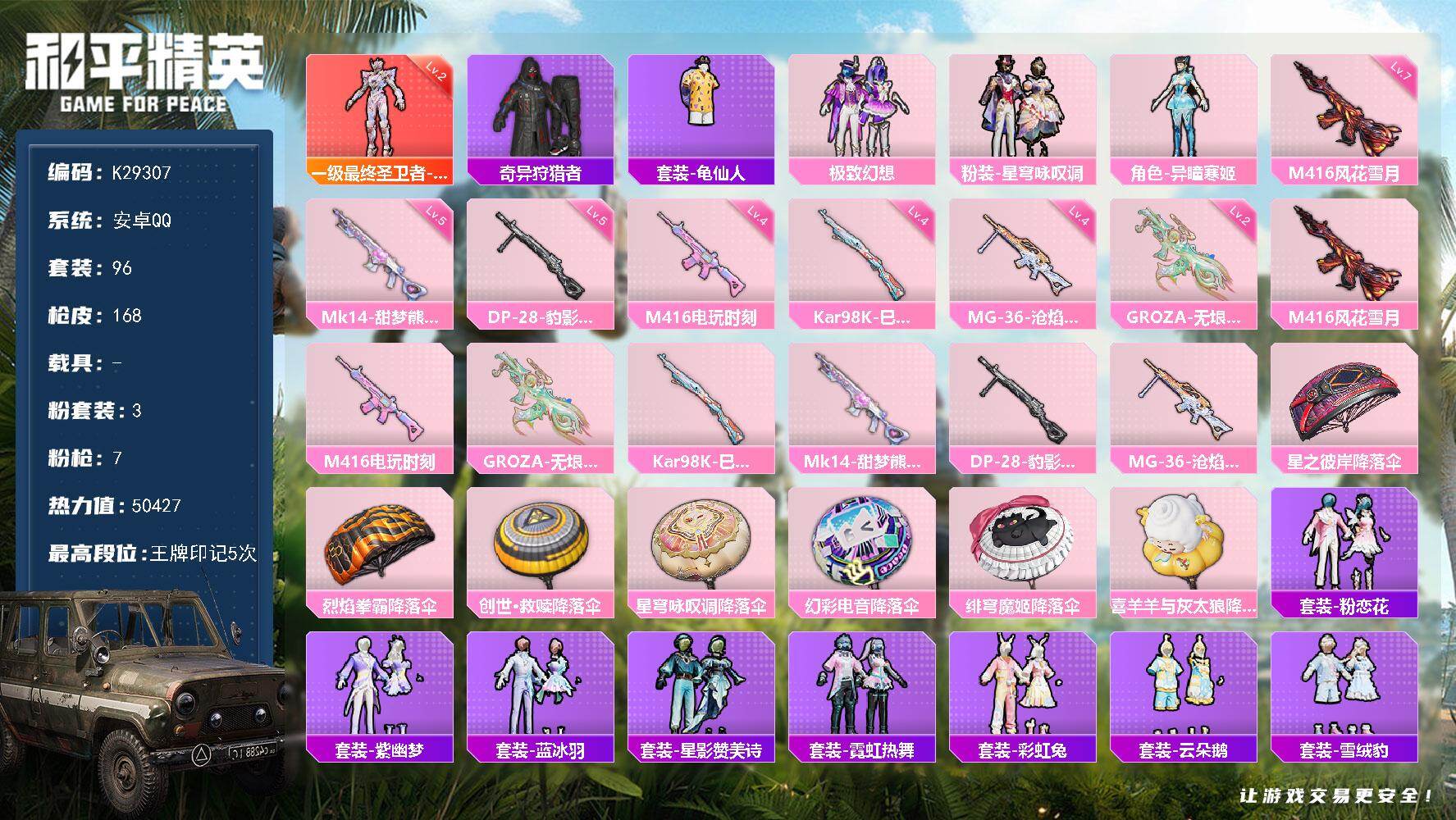安卓 手Q-4粉装-11特效枪-0载具-1粉色飞行器-71976热力值-11王牌