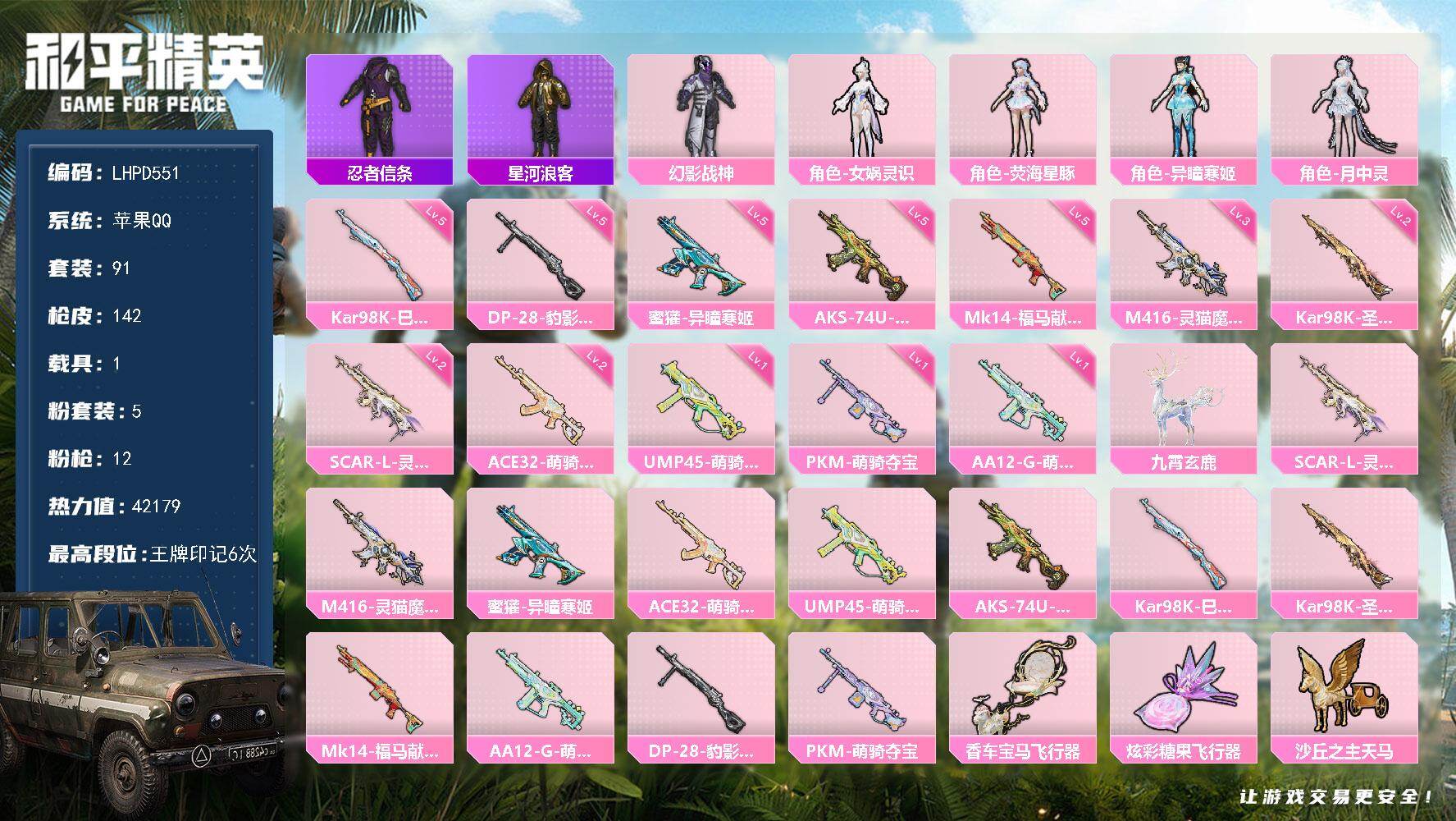 【店主推荐捡漏号!可直接换绑】苹果 手Q-5粉装-12特效枪-1载具-8粉色飞