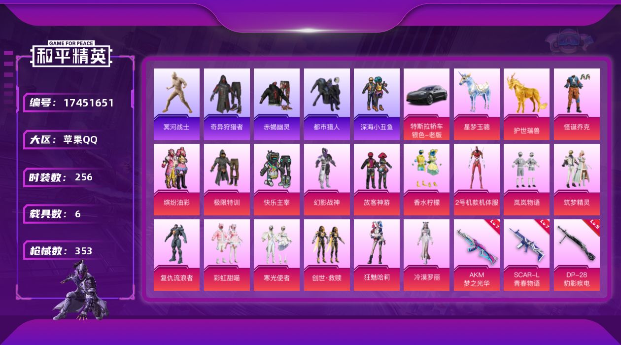 【店主推荐捡漏号】苹果 手Q-1神装-34粉装-16特效枪-6载具-10粉色飞