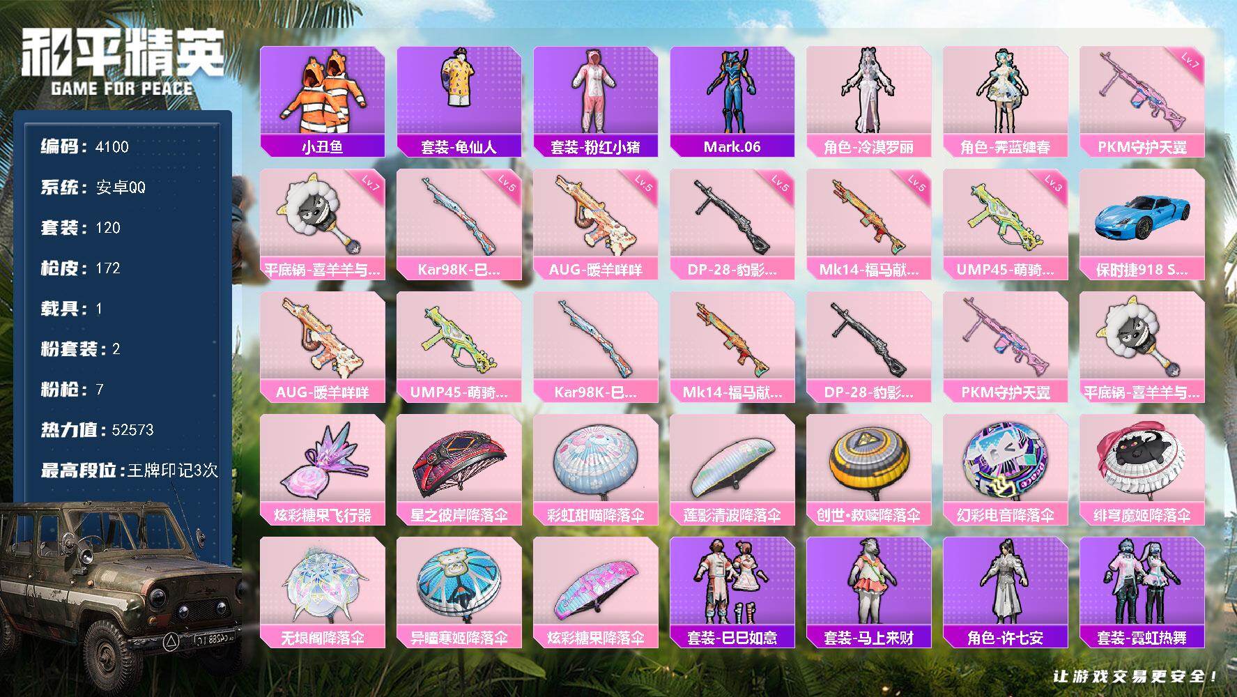 2粉装-7特效枪-1载具-1粉色飞行器-52573热力值-3王牌印记-120套装-172枪皮