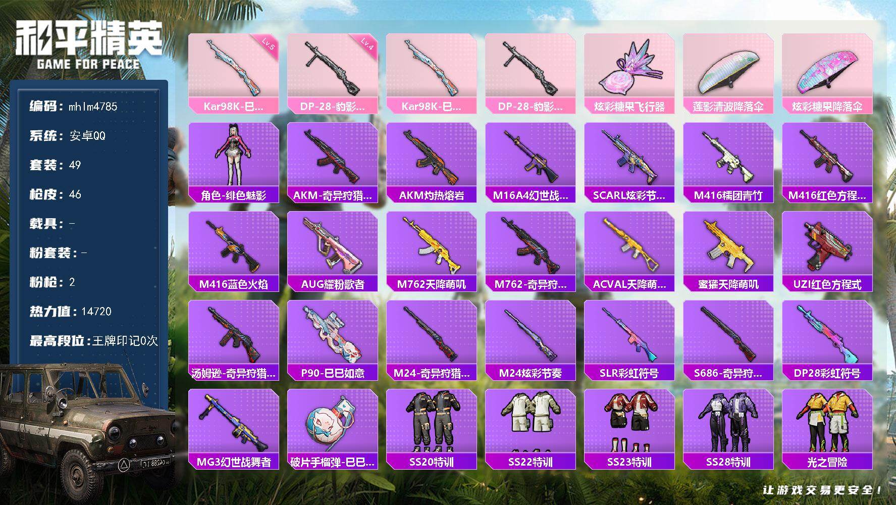 4粉装-7特效枪-2载具-2粉色飞行器-46017热力值-11王牌印记-88套装-140枪皮