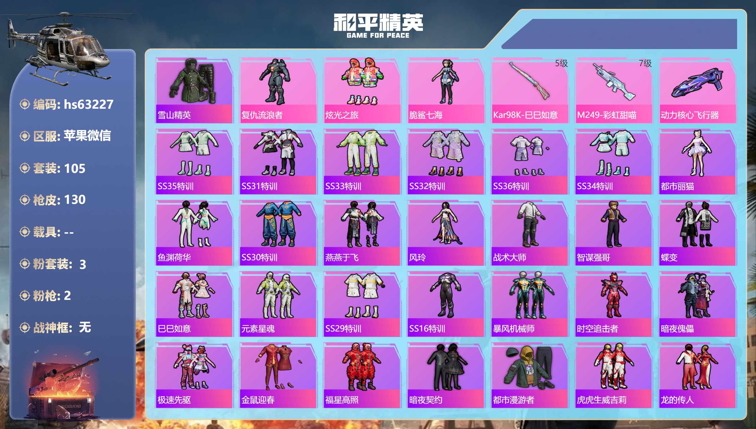 苹果微信-7王牌印记-3粉装-2特效枪-39365热力值-105