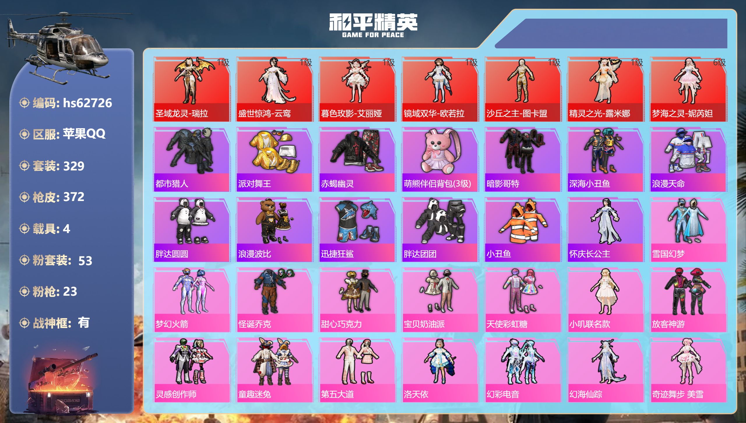 苹果手Q-23王牌印记-有战神框-7红装-53粉装-23特效枪-