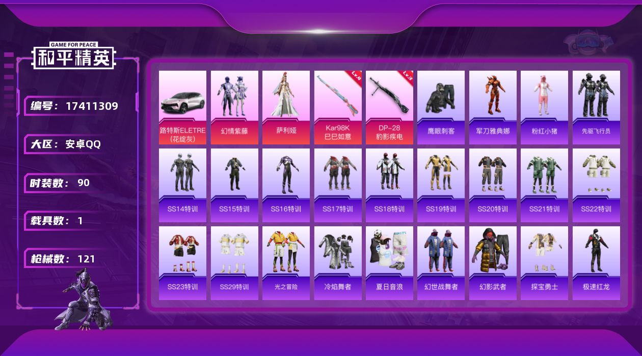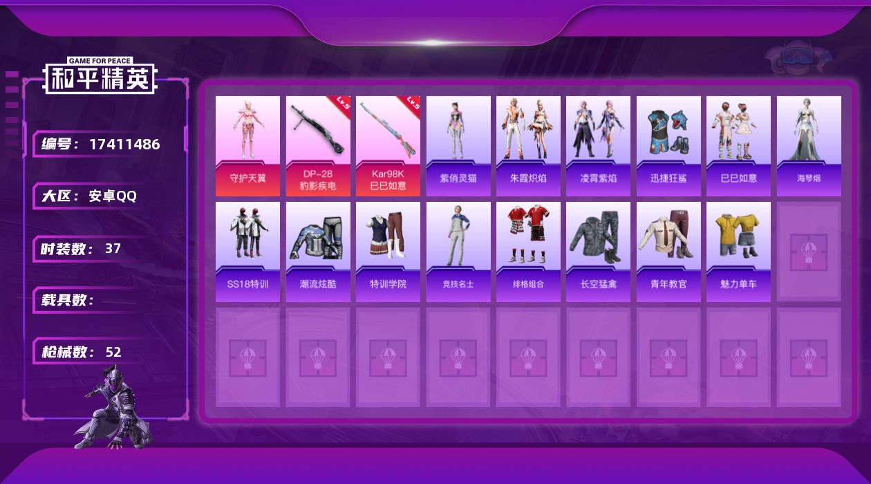 安卓 手Q-3粉装-8特效枪-0载具-1粉色飞行器-41048热力值-1王牌印记