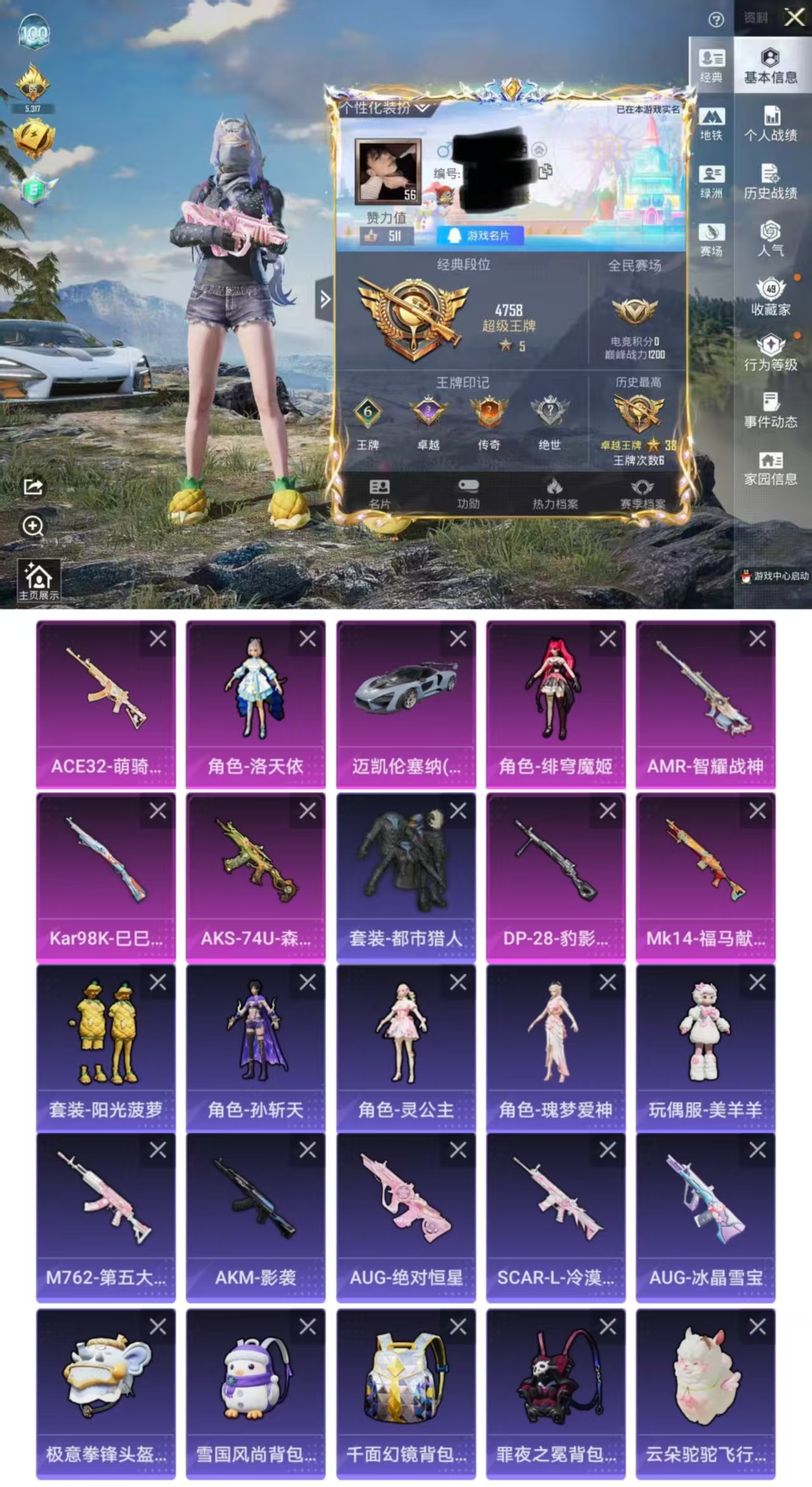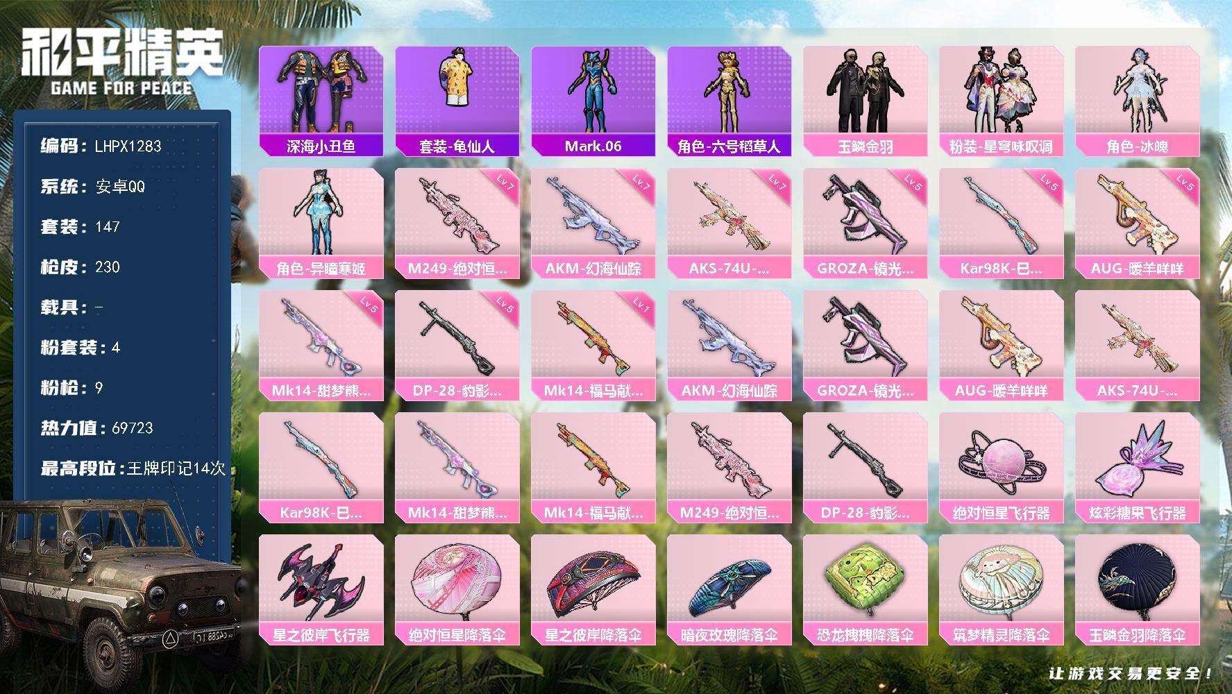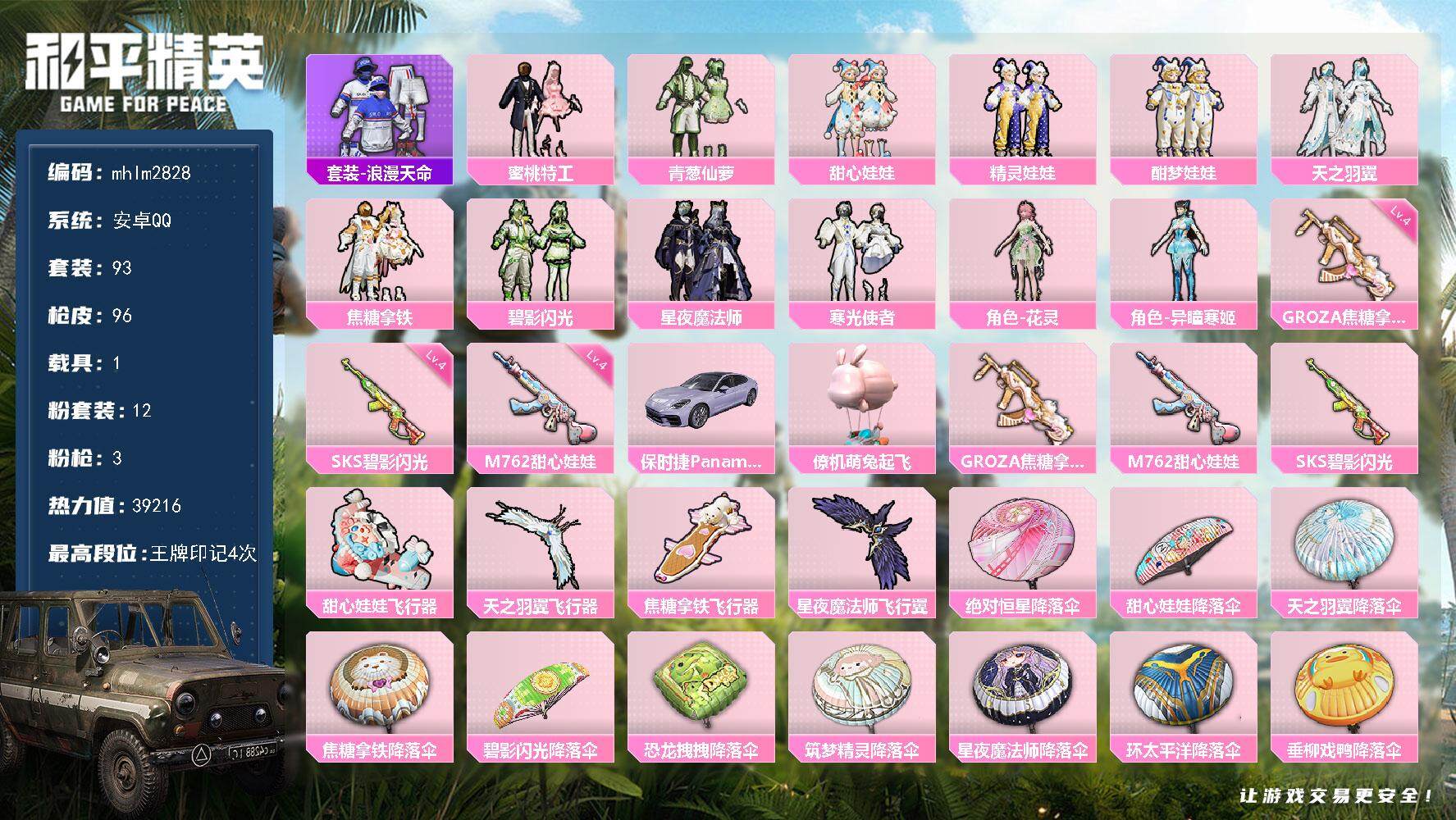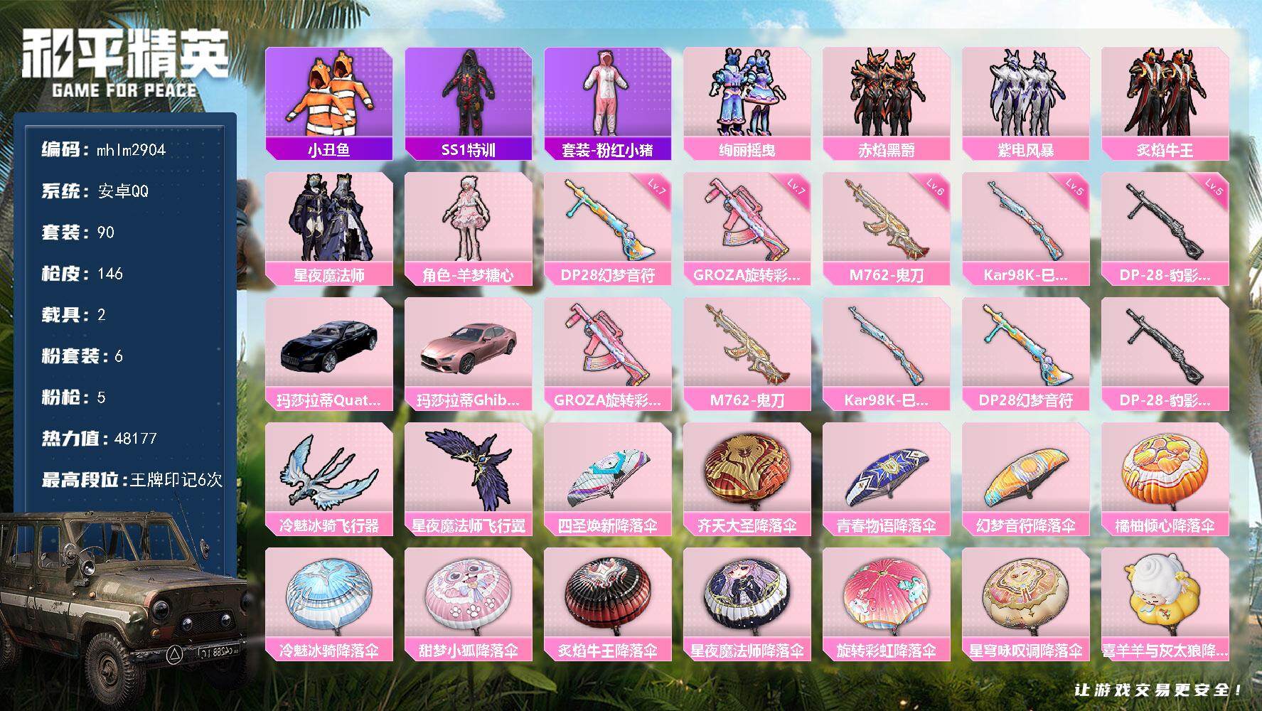 安卓 手Q-6粉装-5特效枪-2载具-2粉色飞行器-48177热力值-6王牌印记