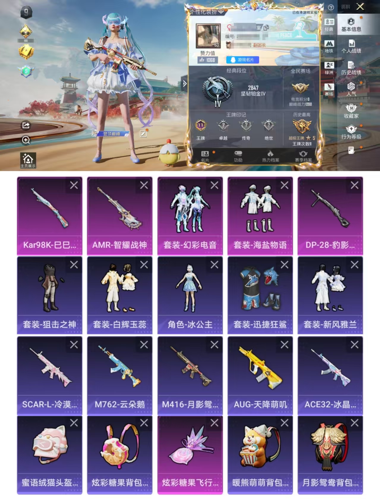 可二次实名【公主女号2红装AUG星梦奇缘小丑女都市猎人7载具15粉装16特效枪