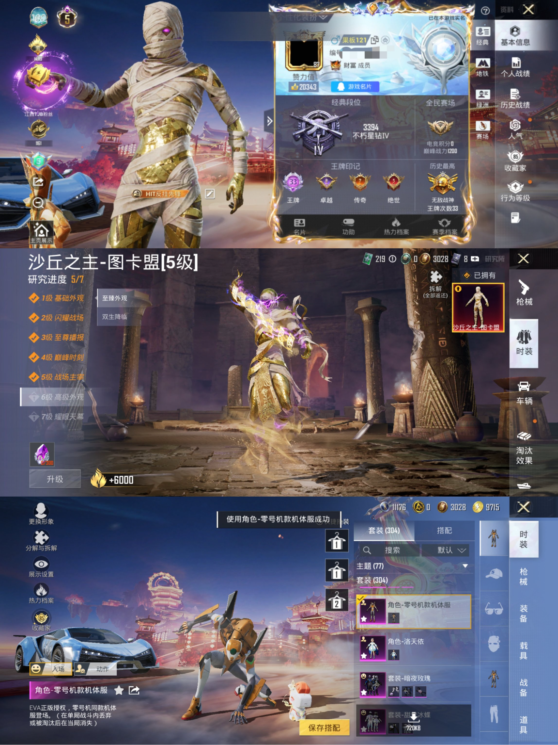 3粉装-6特效枪-3载具-0粉色飞行器-48019热力值-8王牌印记-118套装-140枪皮