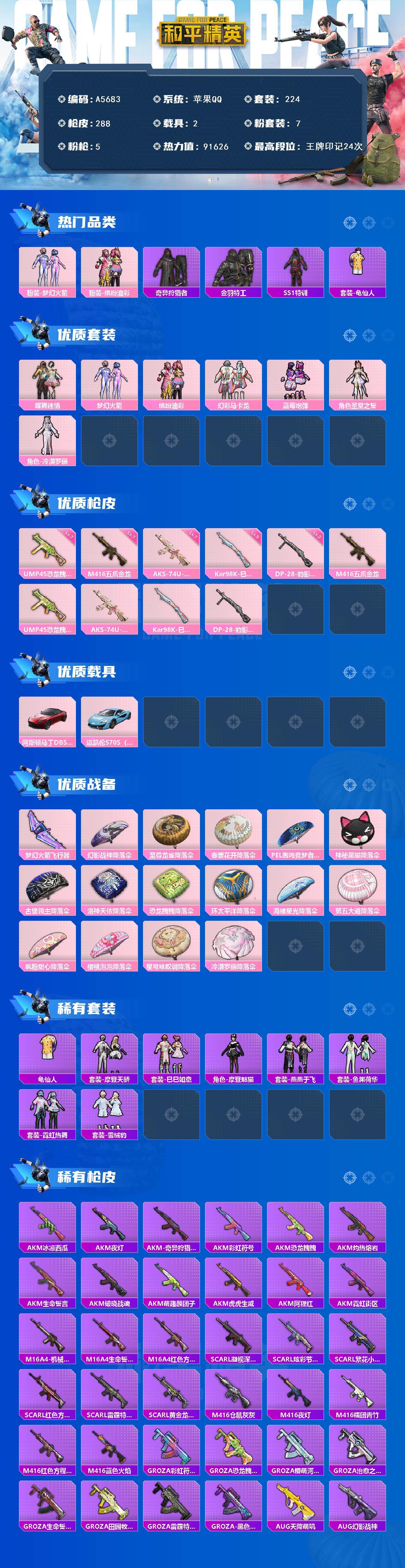 7粉装-5特效枪-2载具-1粉色飞行器-91626热力值-24王牌印记-224套装-288枪皮
