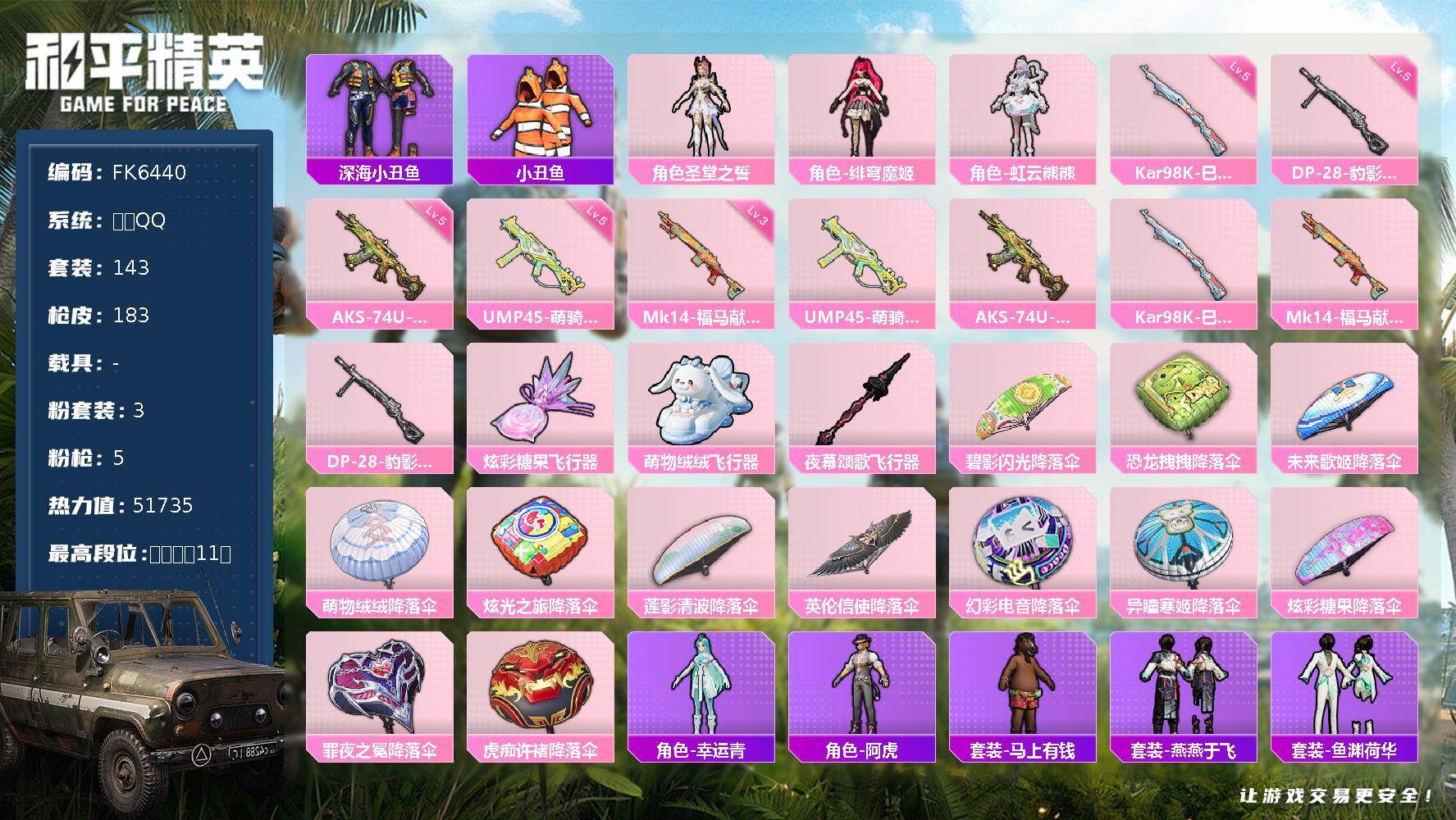 【FK6440】143套装/枪械5/装备217/战备126/王牌印记11/热力