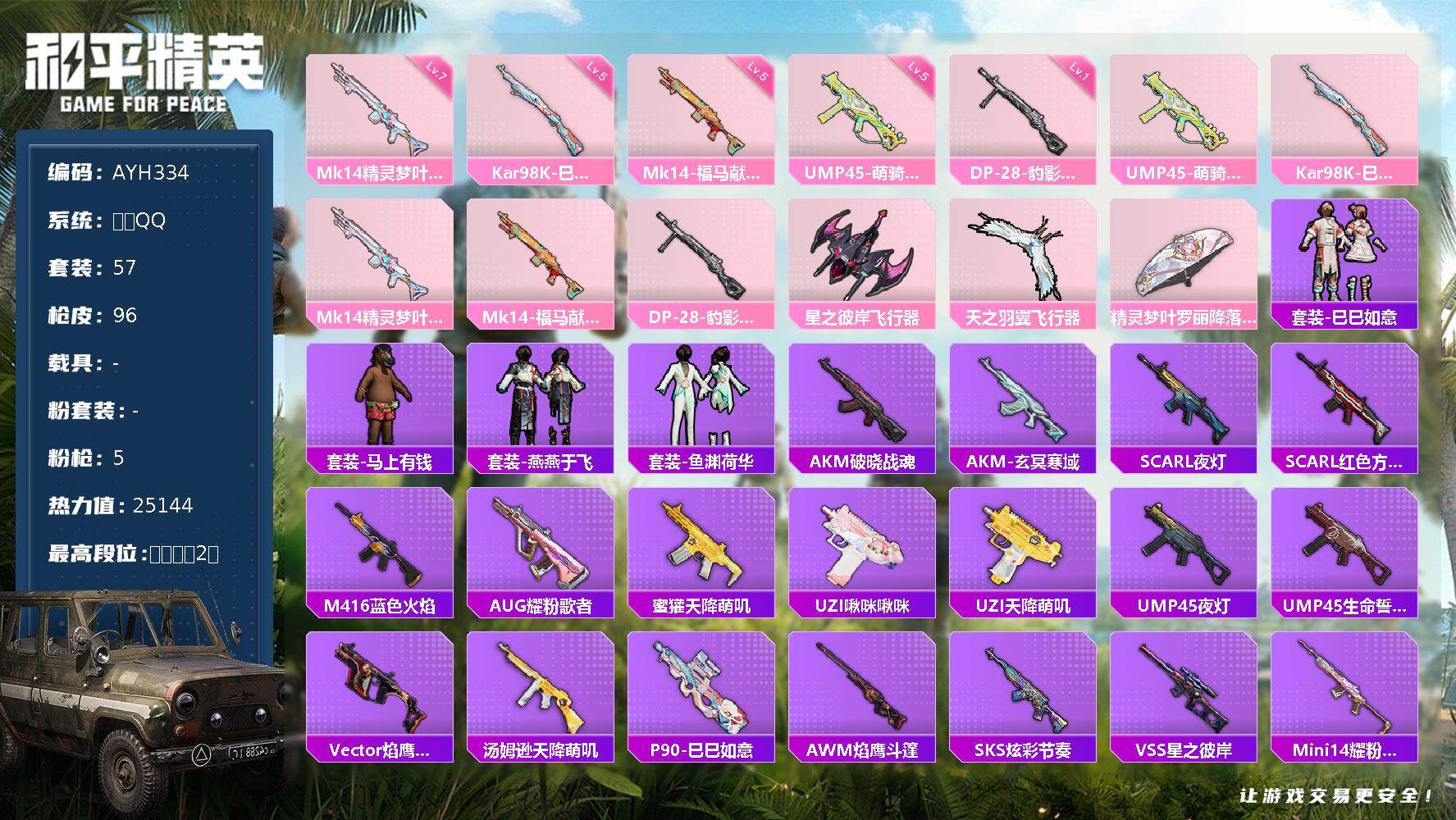【身法号秒发货1载具-3粉装-8特效枪至情至圣[7级] AUG-超新星[5级]
