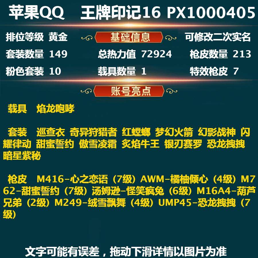 苹果QQ | 全部区服 | 可购终身包赔