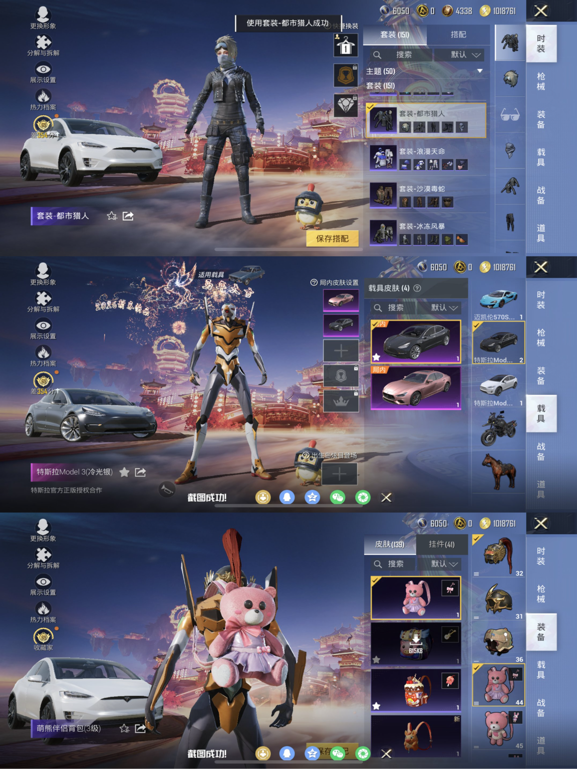【小丑女都市猎人小熊背包7级M4至情至圣31粉装23特效枪3载具素材号 秒换绑不