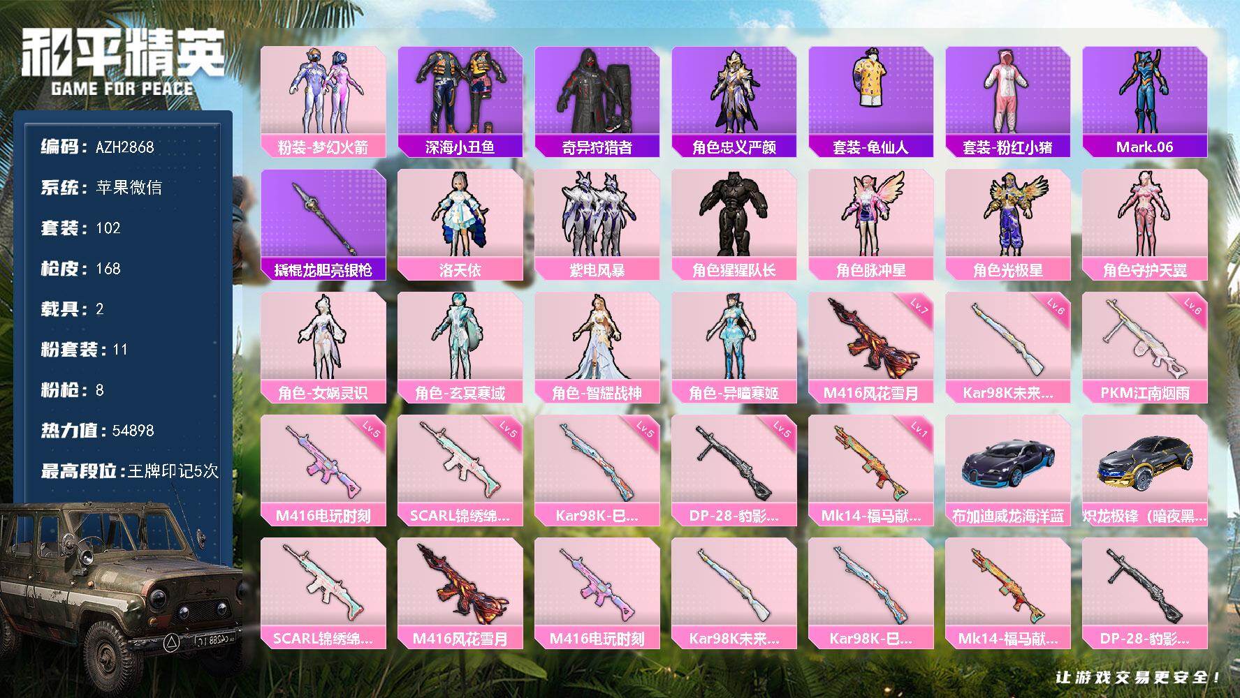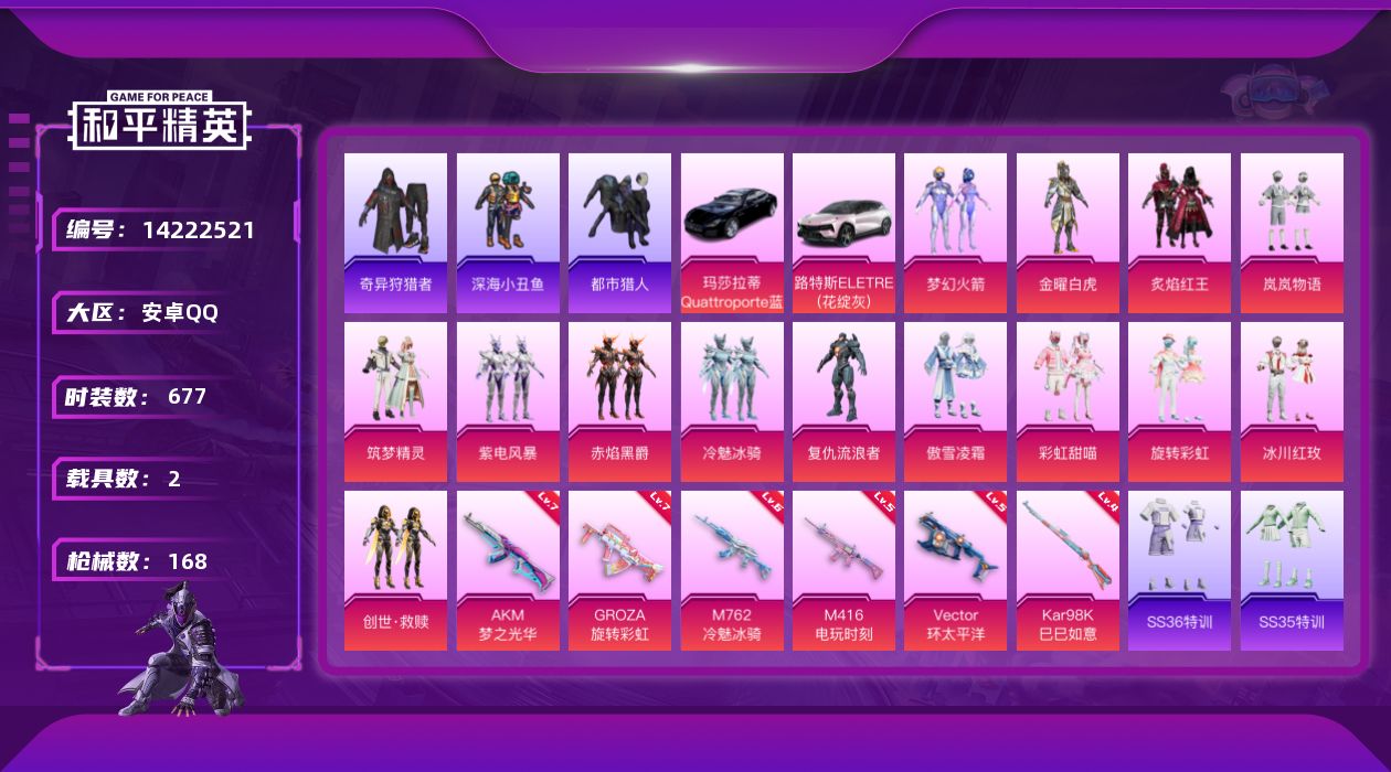 苹果手Q-2粉装-7特效枪-85套装-157枪皮-10王牌印记-超级王牌2星-4