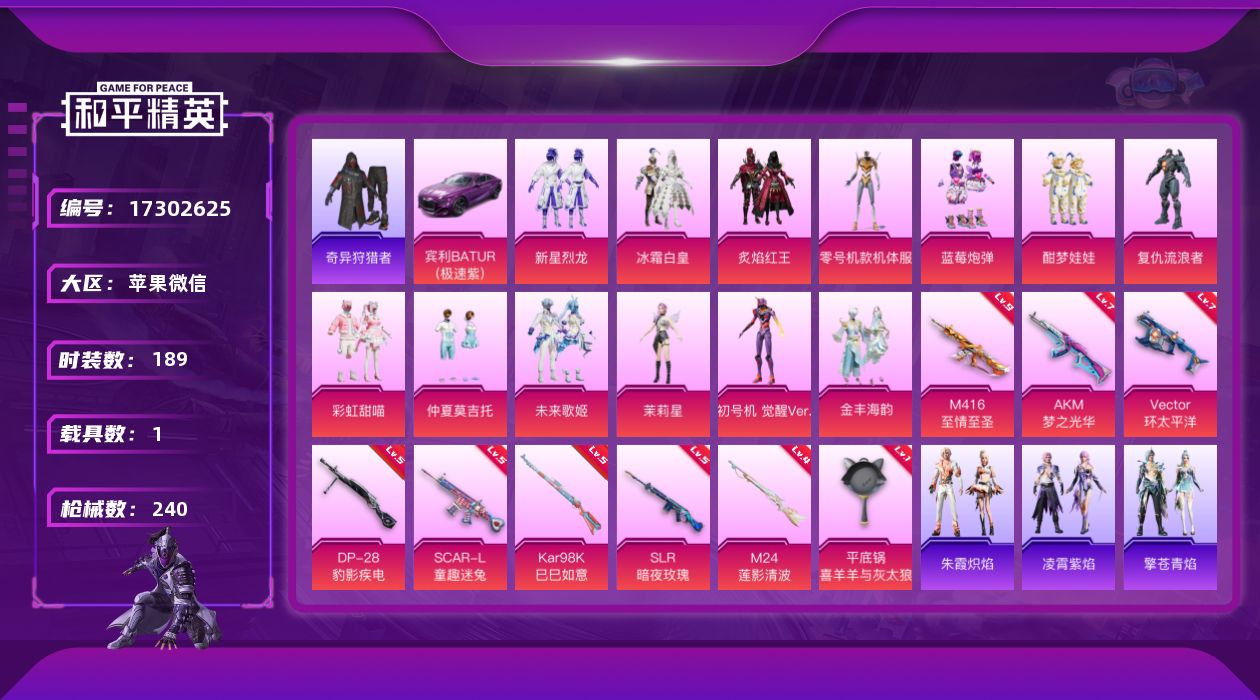 苹果 微信-15粉装-6特效枪-1载具-5粉色飞行器-604